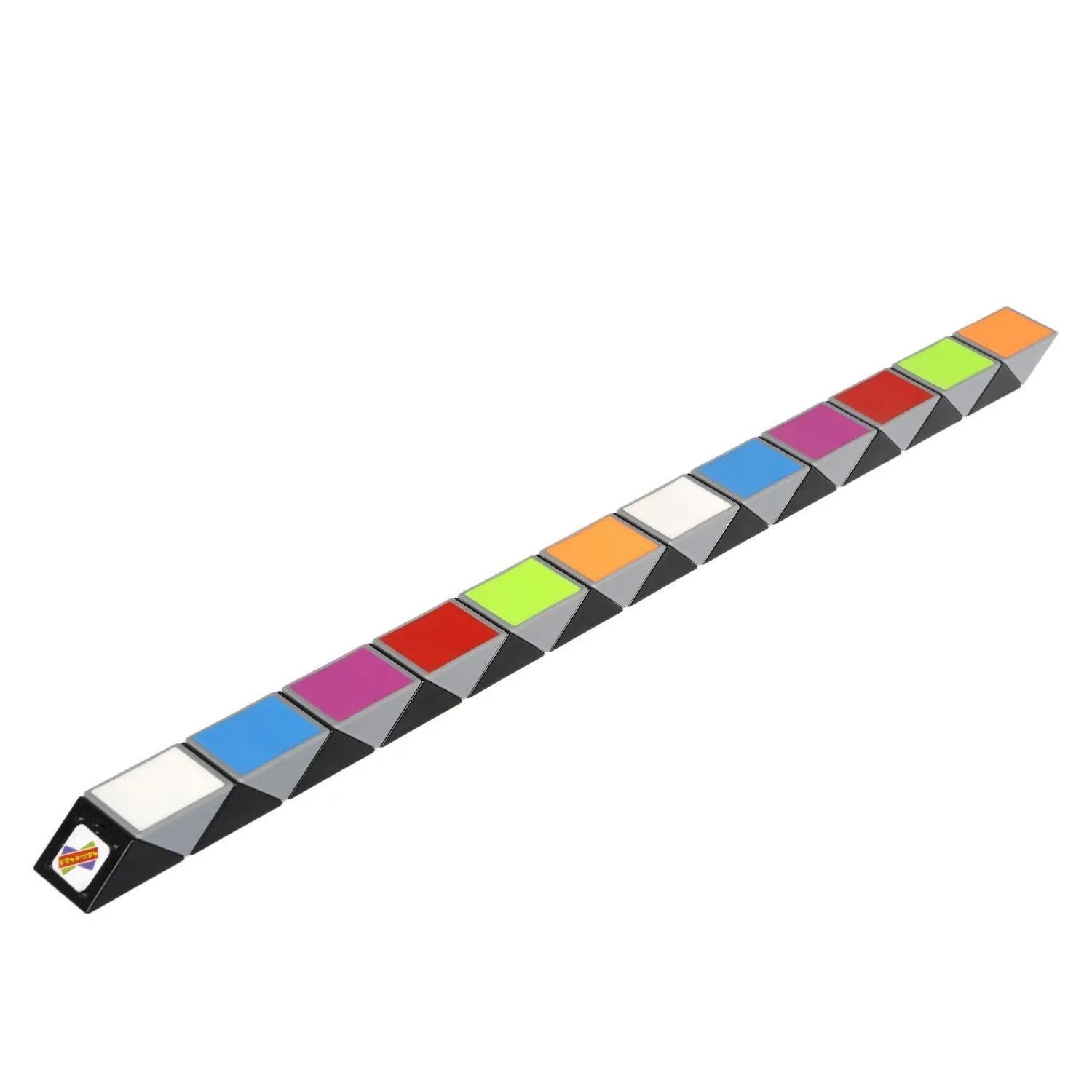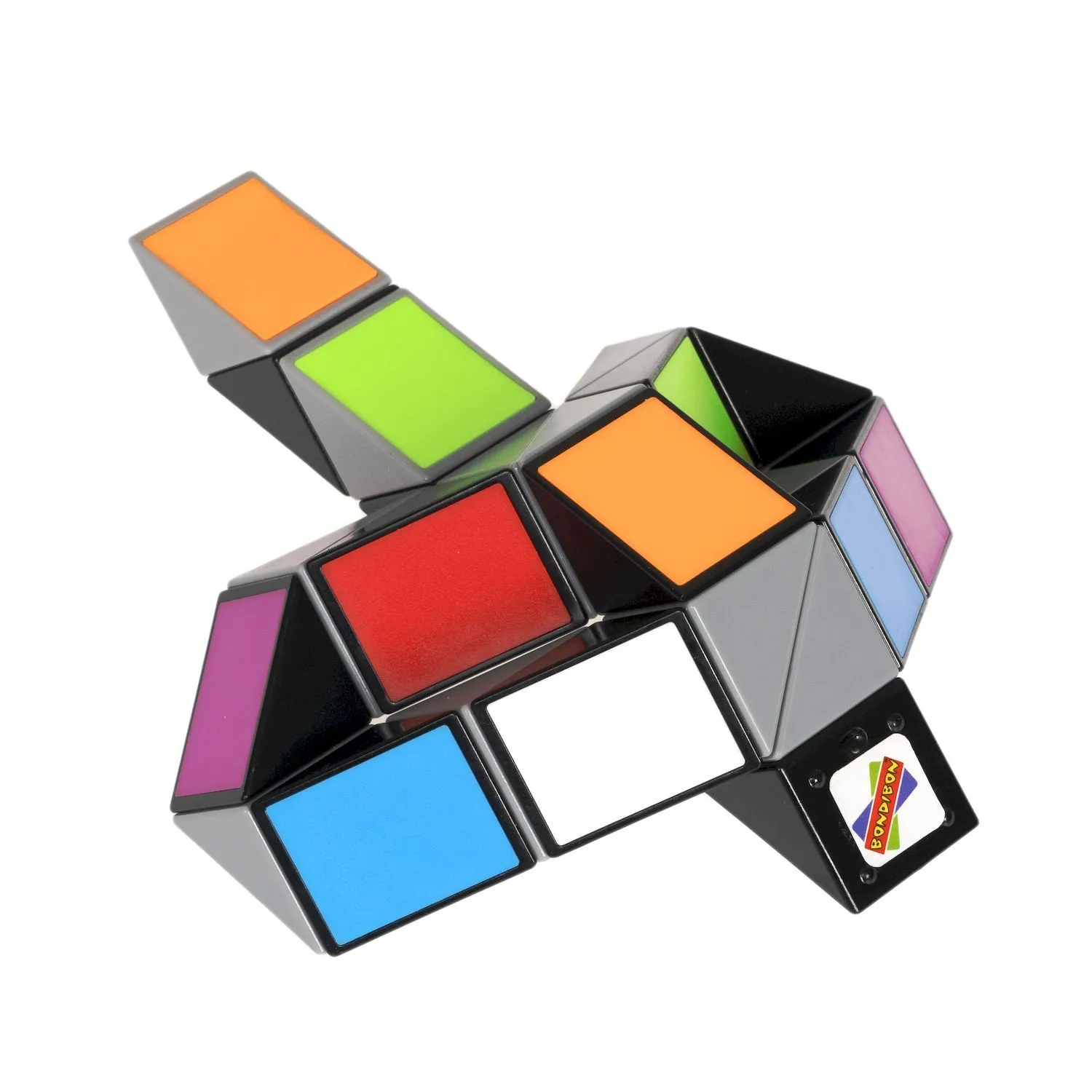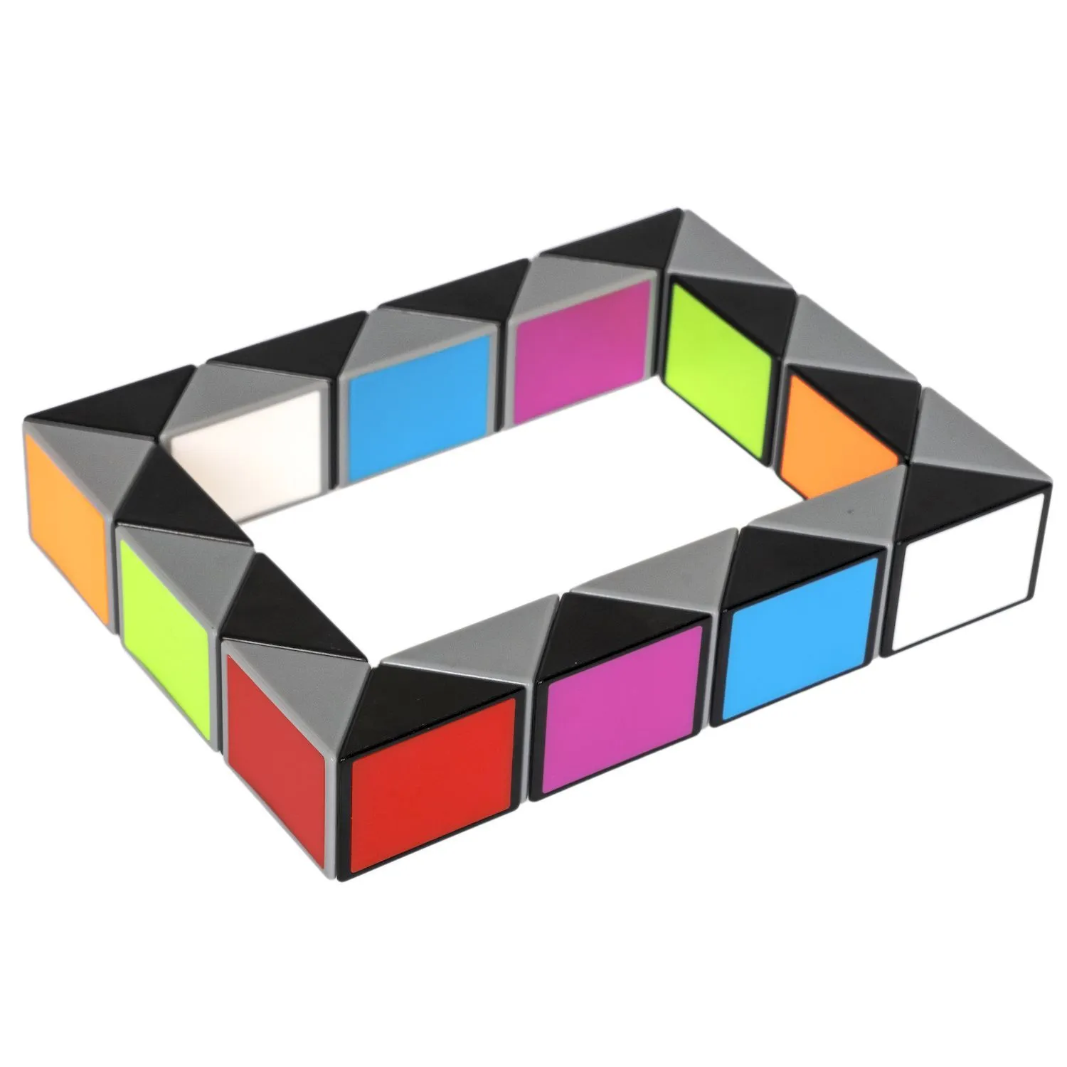 - разноцветная головоломка от Bondibon, сложенная в виде ската, состоит из 24 равнобедренных треугольных призм, соединенных между собой шарнирами