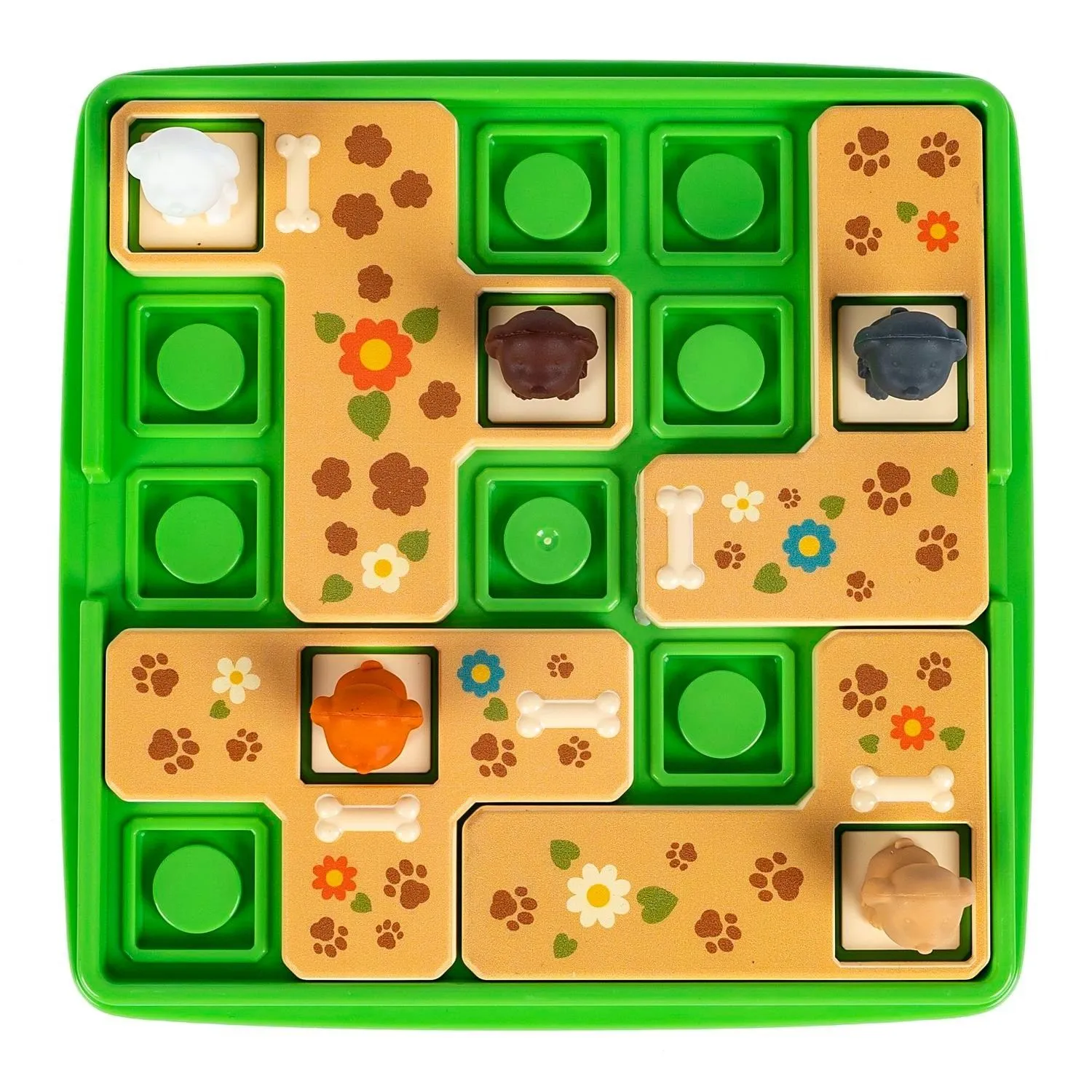 - суть игры: найти решение, перемещая детали с будками одну за другой до тех пор, пока все собачки не окажутся внутри будок