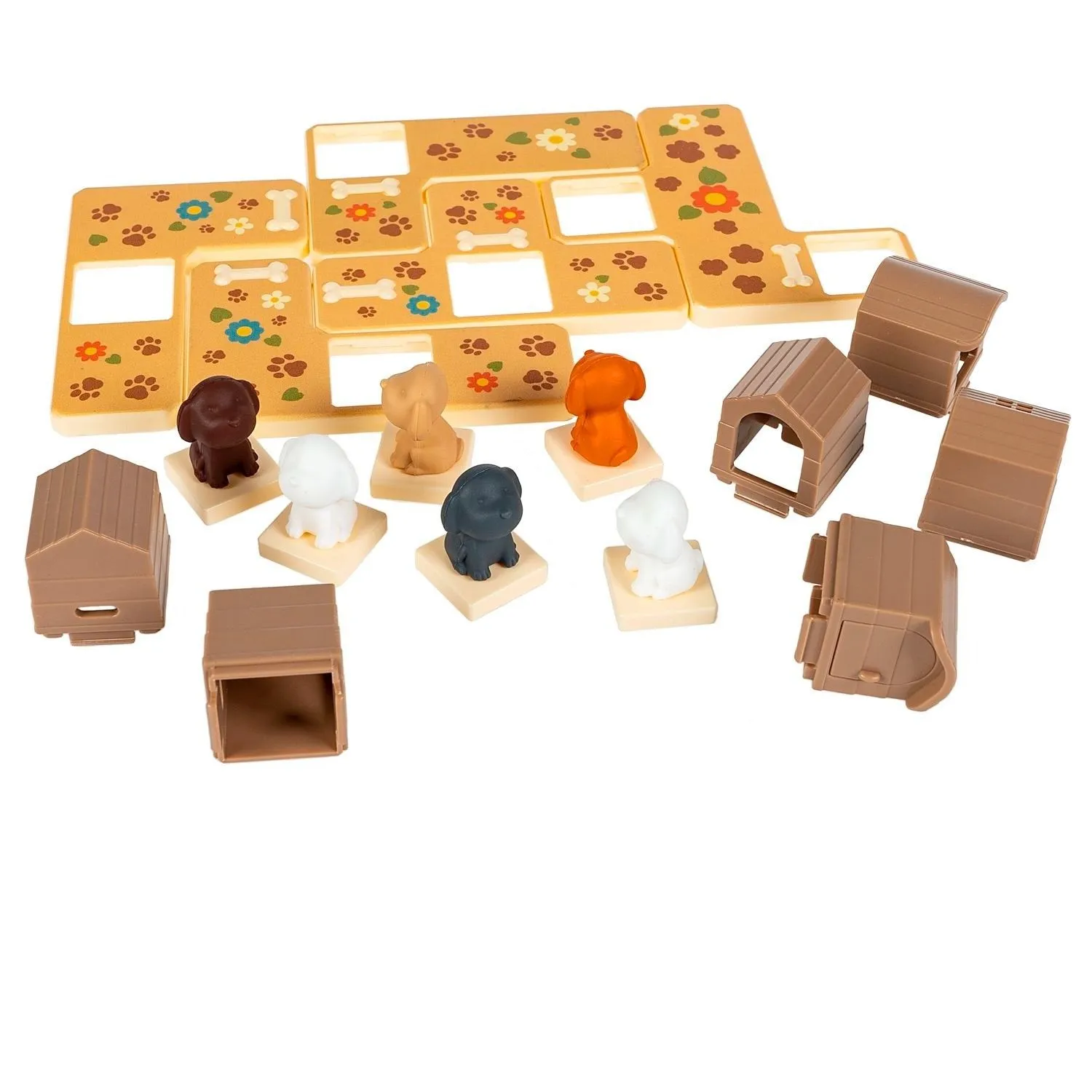- начало игры: поместите на игровое поле 5 деталей в виде собак и 4 детали с будками так, как показано в задании