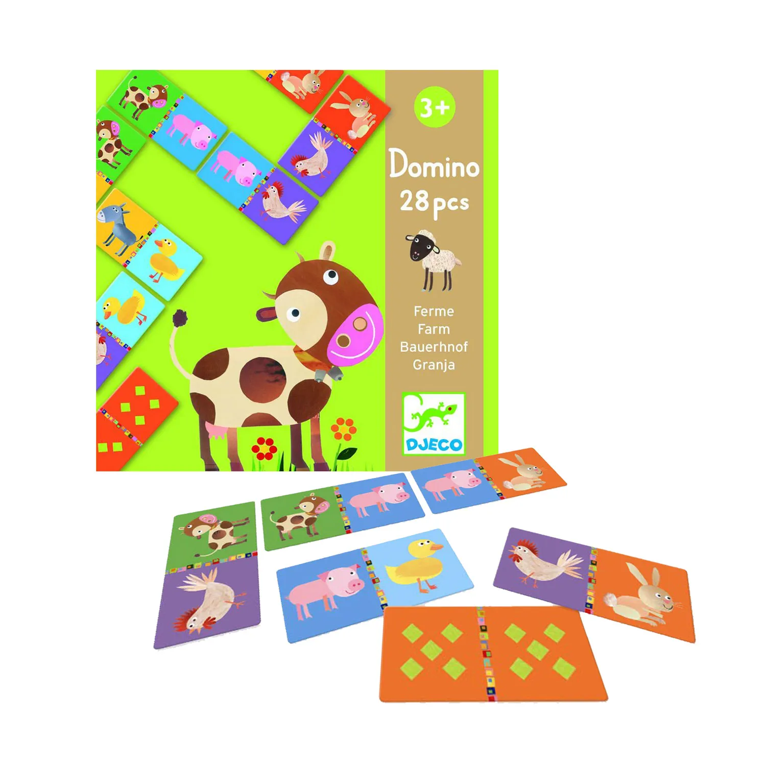 Одна сторона из забавных картинок фермерских животных, вторая цифра, соответствующая количеству точек.