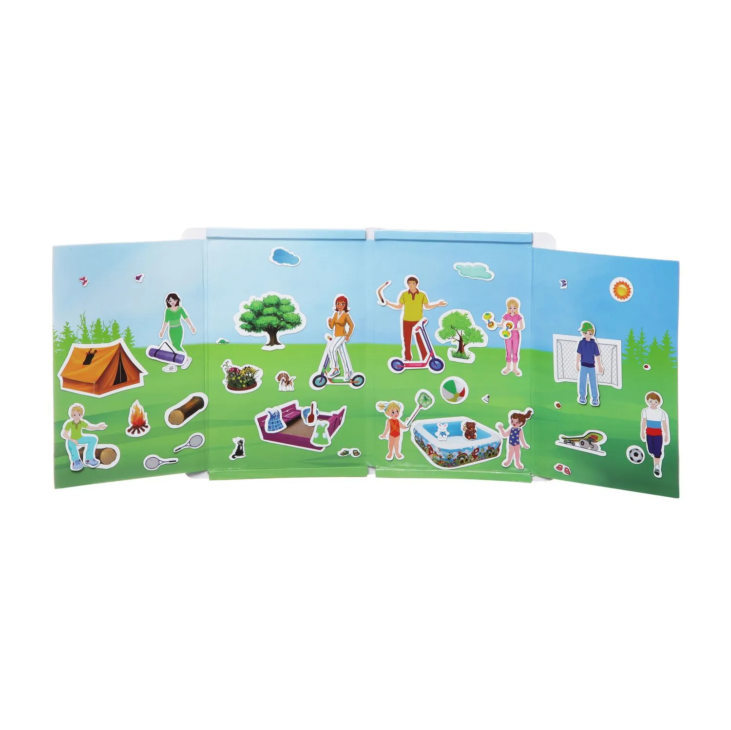 - набор из 52 красочных магнитных элемента с изображением разнообразных героев, деталей природы, предметов обихода