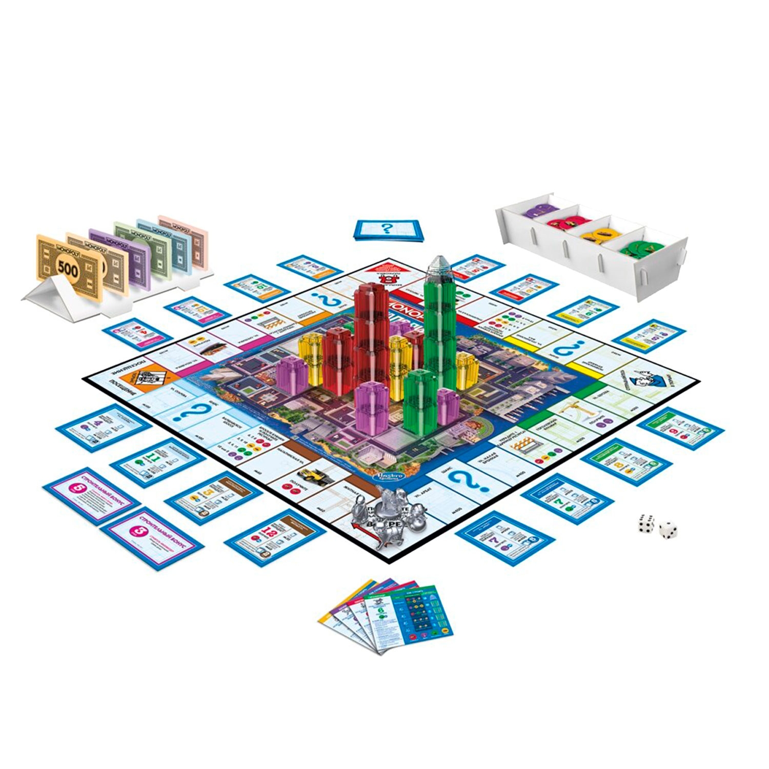 - названия и логотипы Hasbro, Hasbro Gaming, Parker Brothers и Monopoly, отличительный дизайн игровой доски, четыре угловых квадрата, имя и символ Mr.Monopoly, а также каждый из отличительных элементов доски и игровых фигур являются товарными знаками компании Hasbro