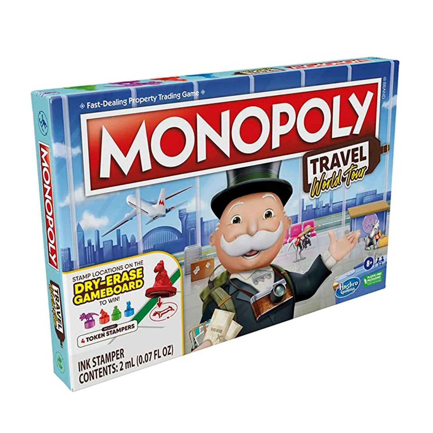 С игрой Монополия Путешествие по миру для вас открыты уголки земного шара! Игроки перемещаются по доске, посещают разные места и отправляются в путешествия, чтобы выиграть.