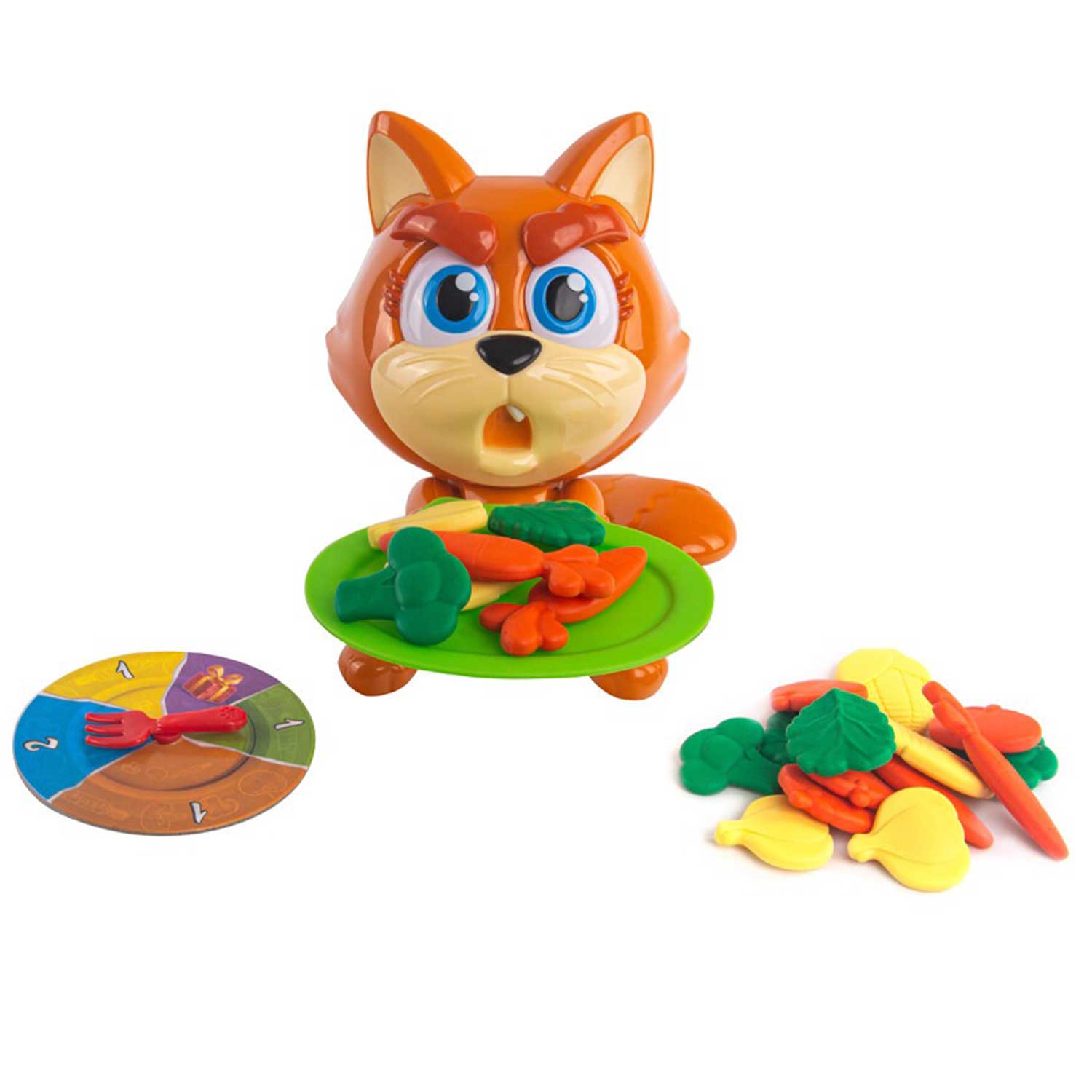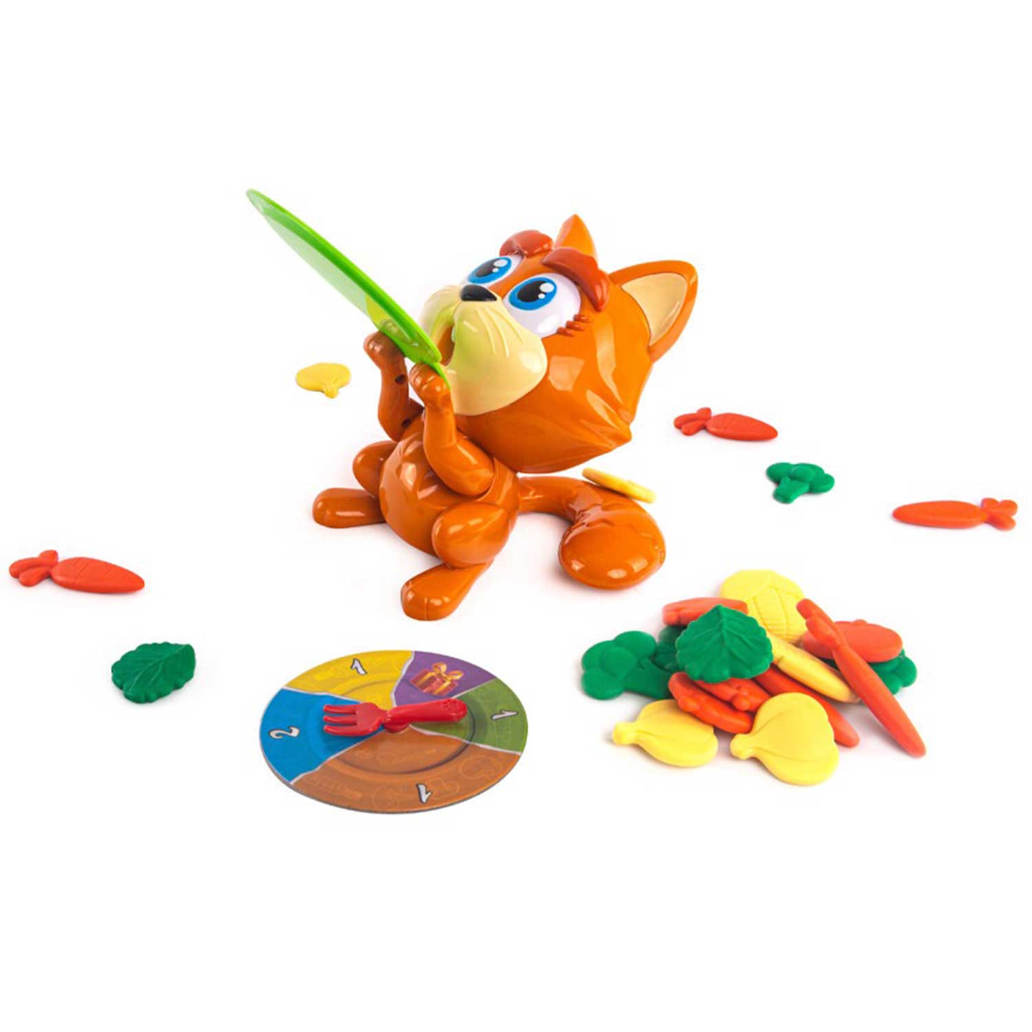 - крути рулетку и клади овощи на тарелку. Но осторожно! Если кошак опрокинет тарелку-ты проиграл!