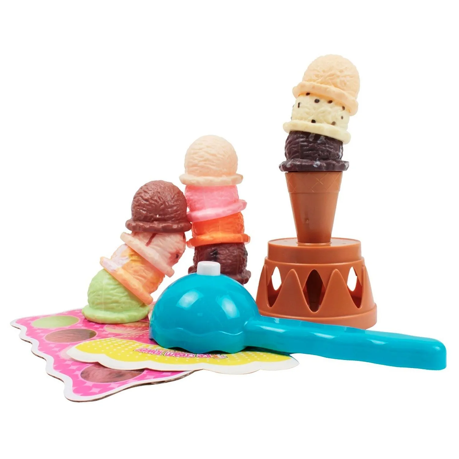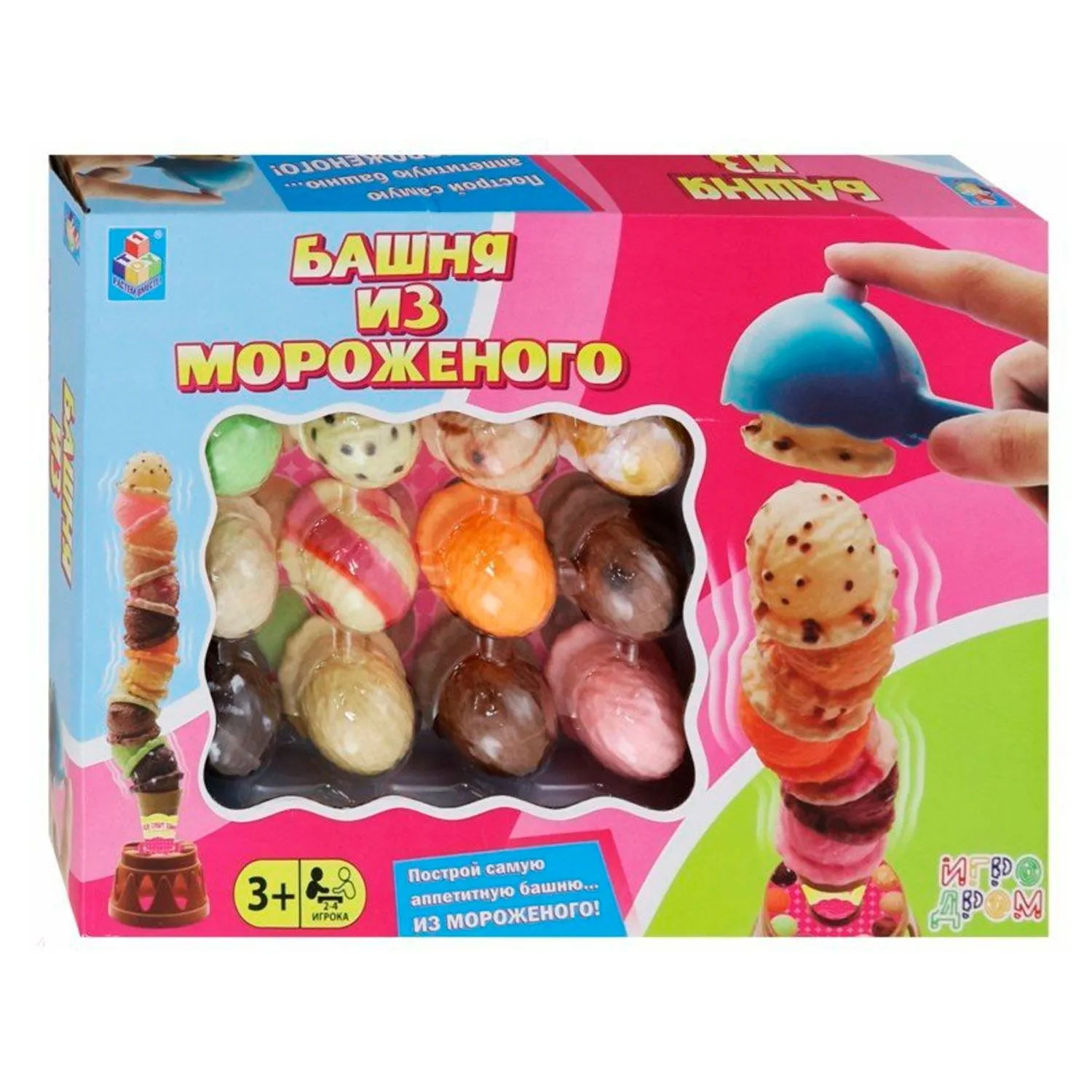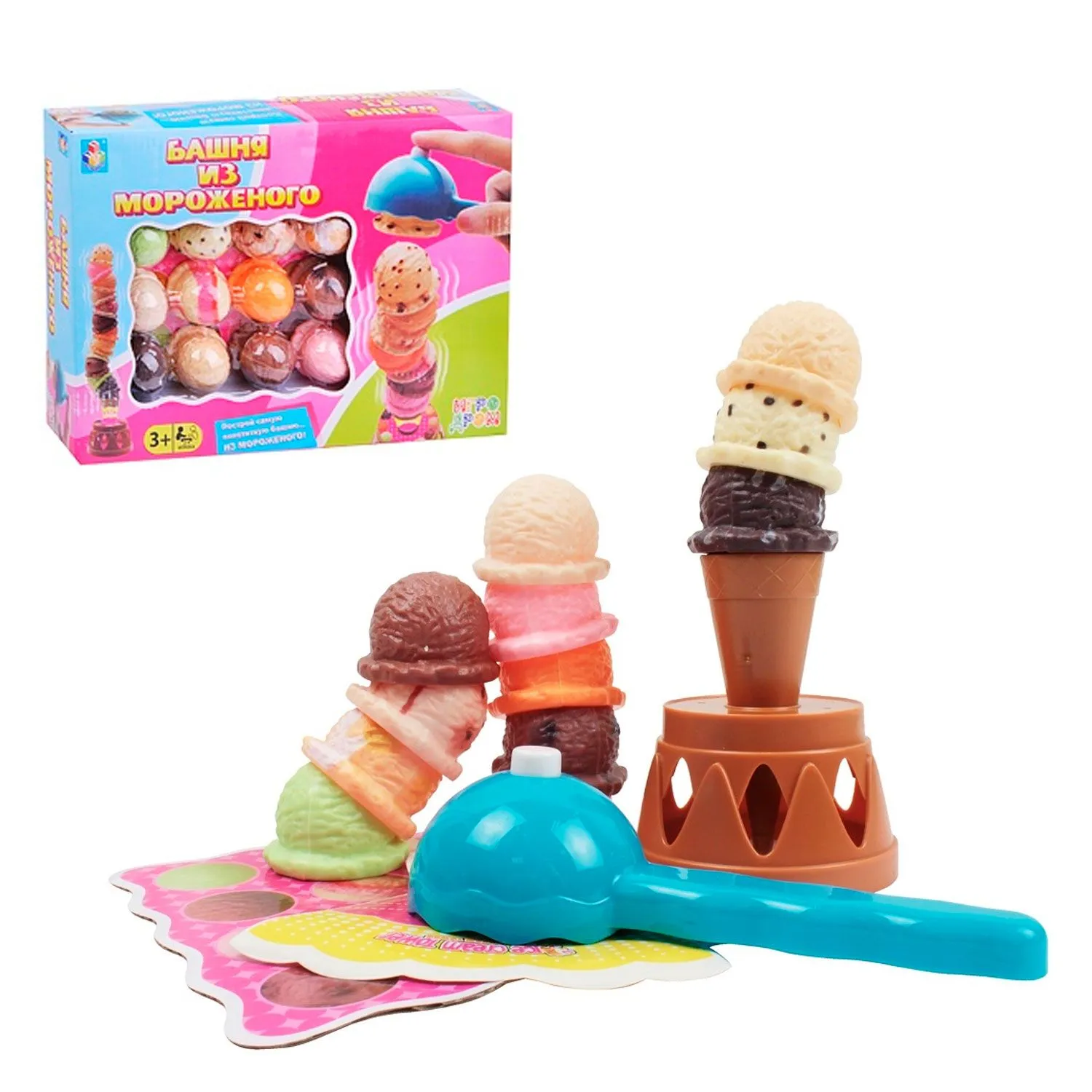 - основанием для башни послужит подставка, на которую устанавливается рожок мороженого, на который нужно накладывать шарики мороженного один на другой