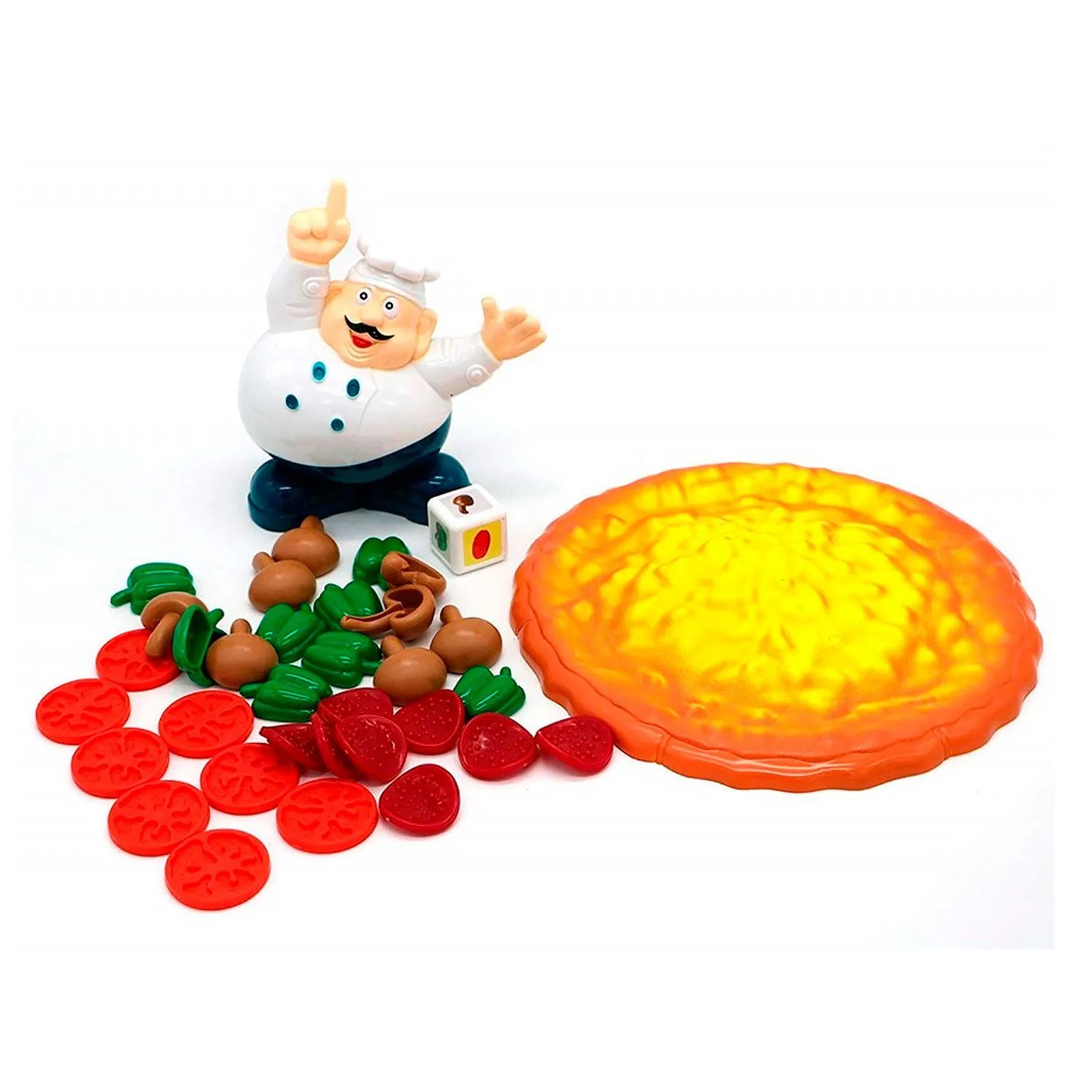 - по правилам этой настольной игры ее участники должны приготовить аппетитную пиццу, но начинку определяет бросок кубика