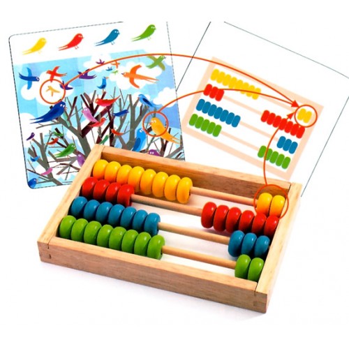 Комплект: 20 карточек с заданиями, деревянные счеты.