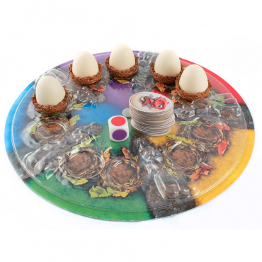 - вращающееся игровое поле изображает гнездо динозавриков и разделено на несколько секторов разных цветов
