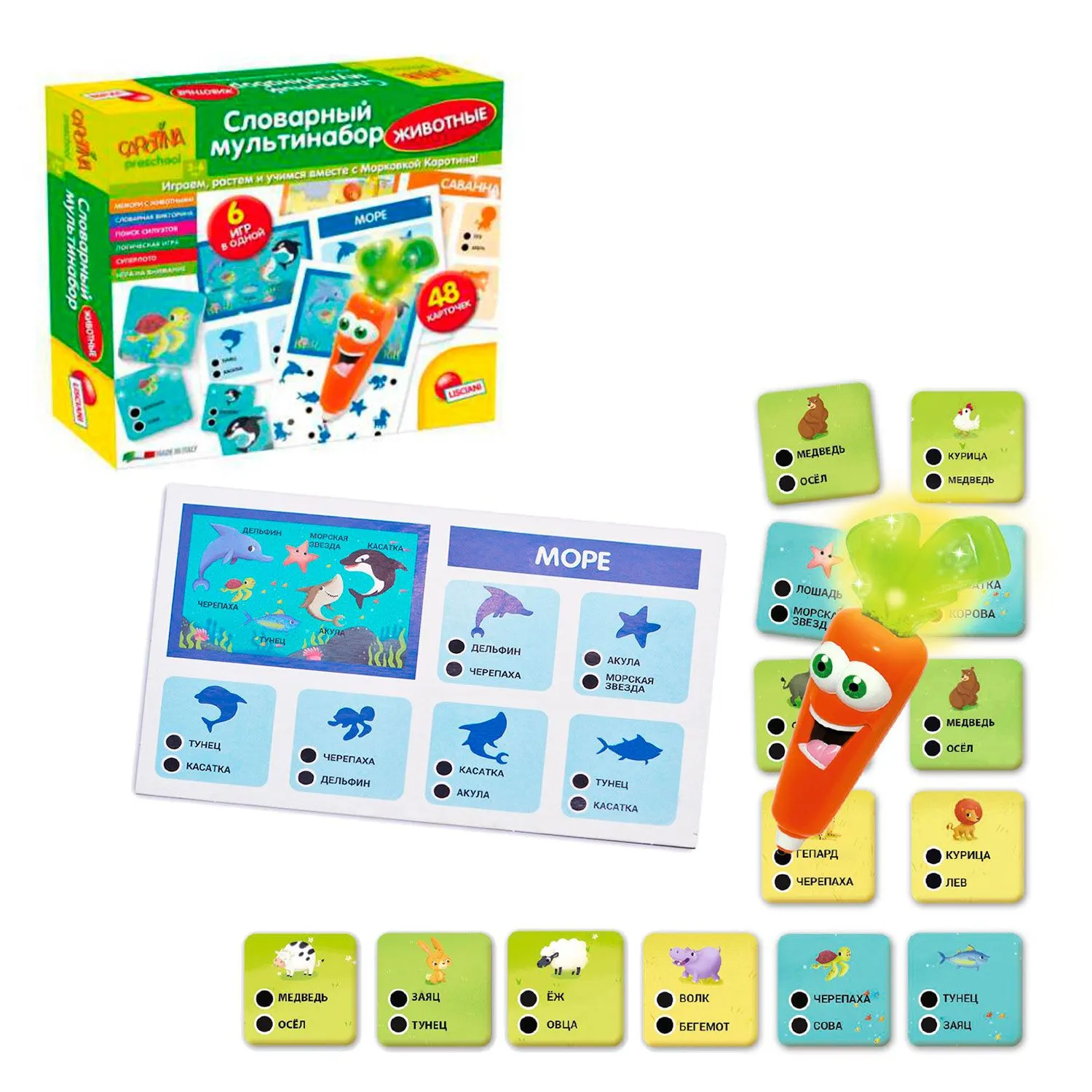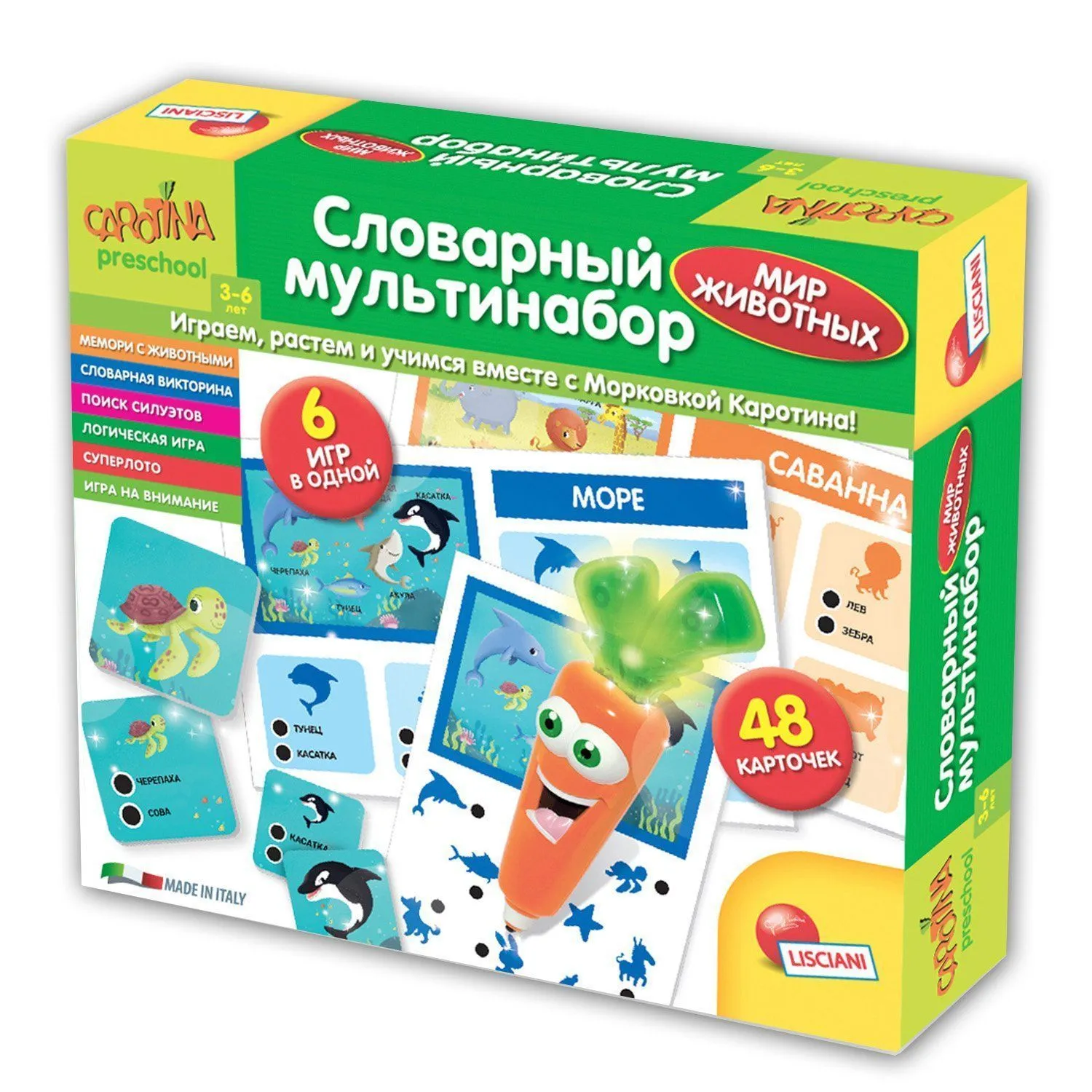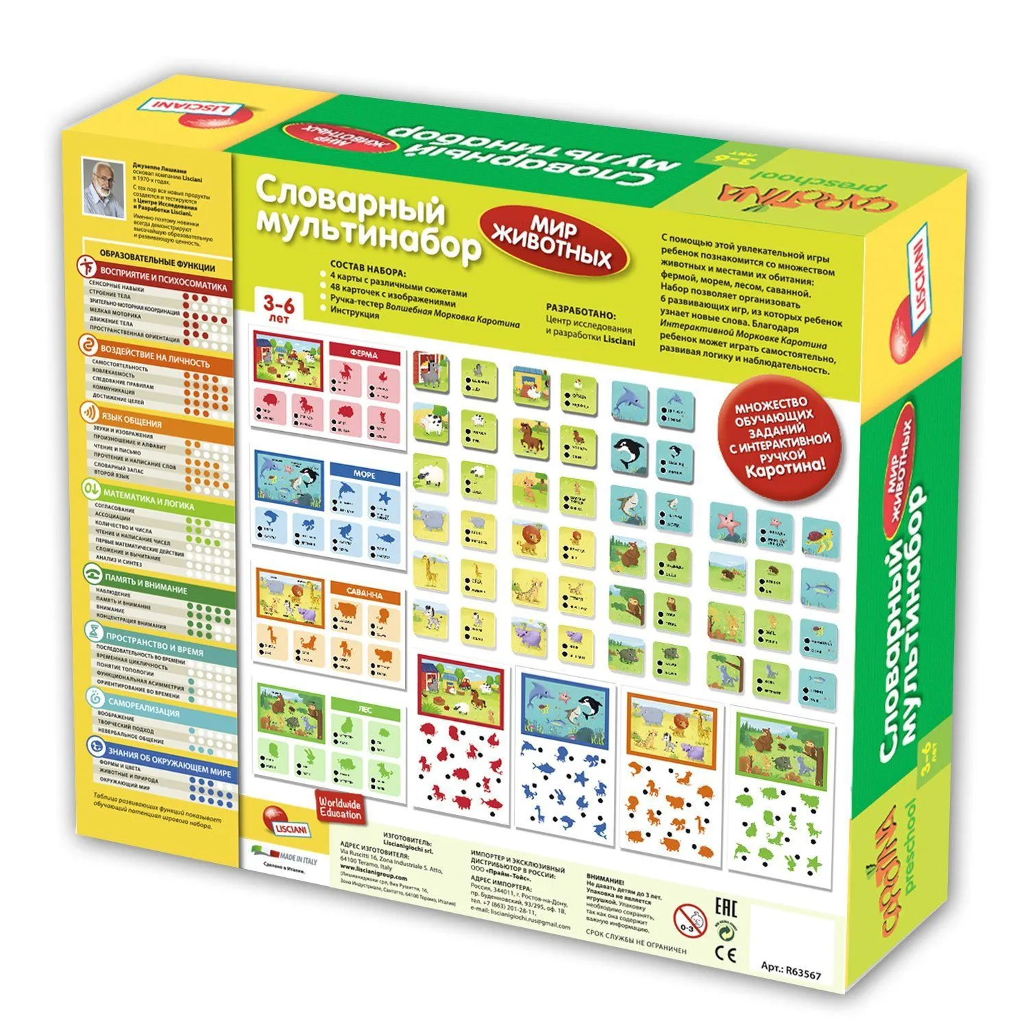 Игра Lisciani "Словарный мультинабор Мир животных" реализует в себе комплексную программу поэтапного развития ребенка, разработанную профессором Лишиани.