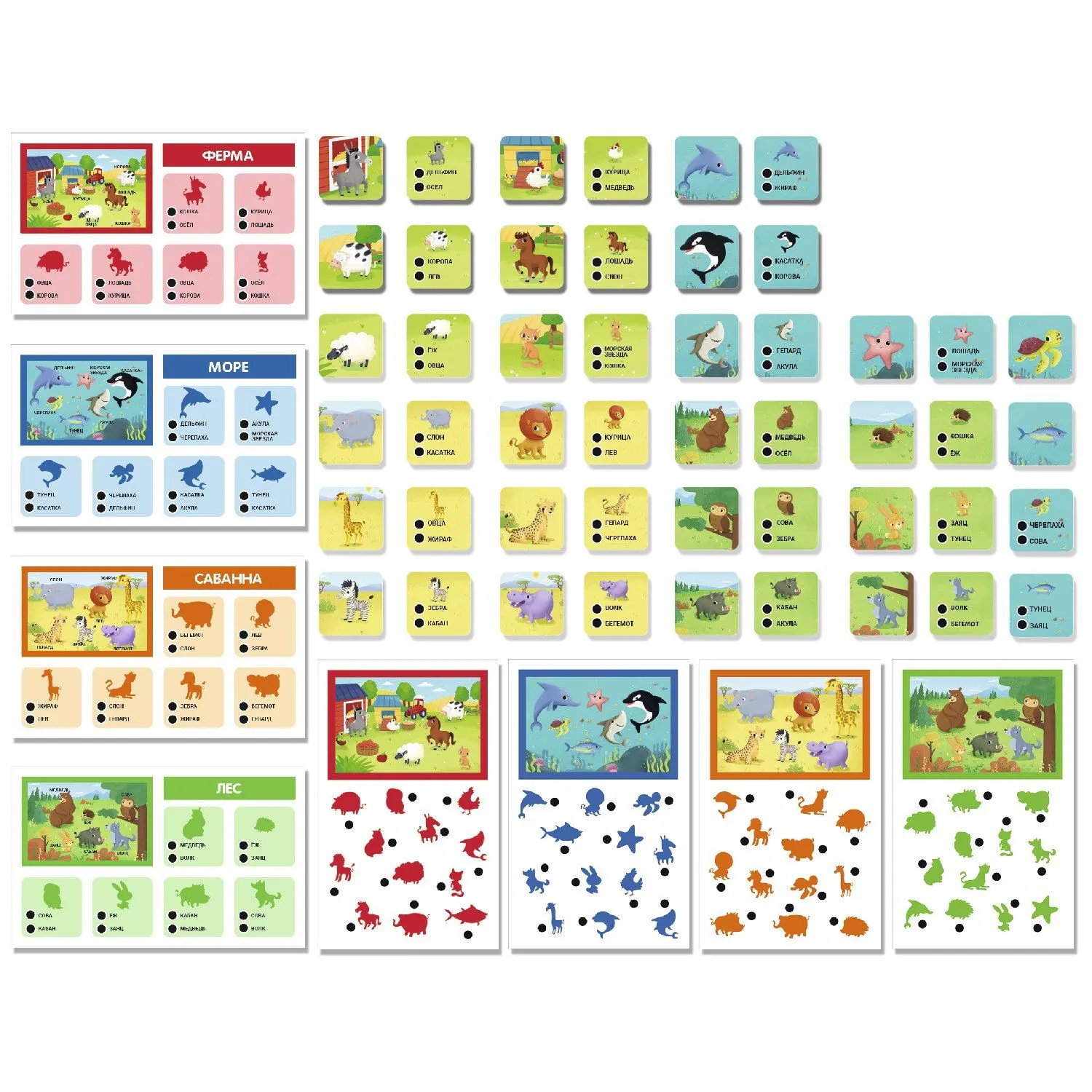 - 4 карты с вариантами среды обитания животных