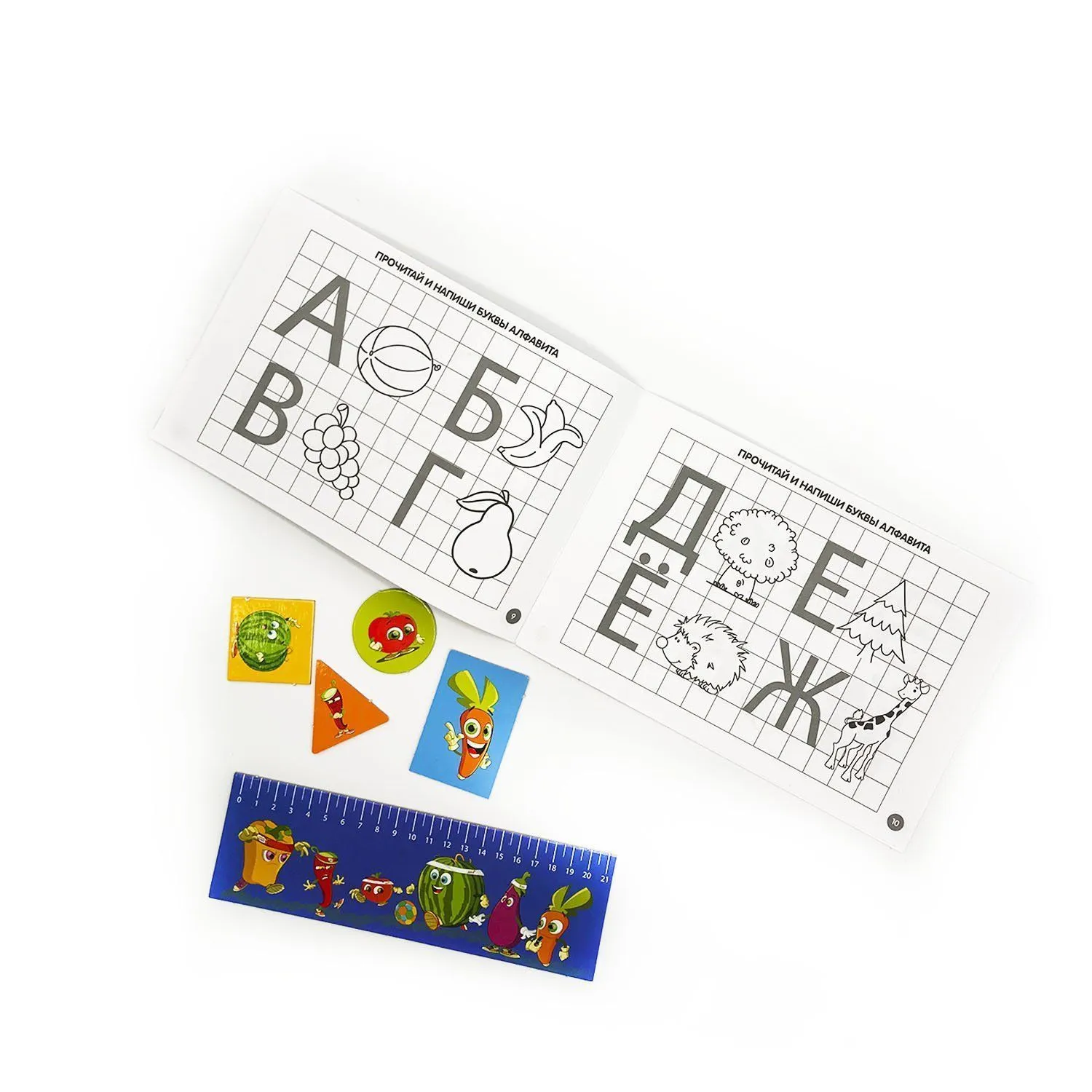- прилагаемые линейка и трафарет латинских букв помогут чертить аккуратные линии и изучать алфавиты иностранных языков