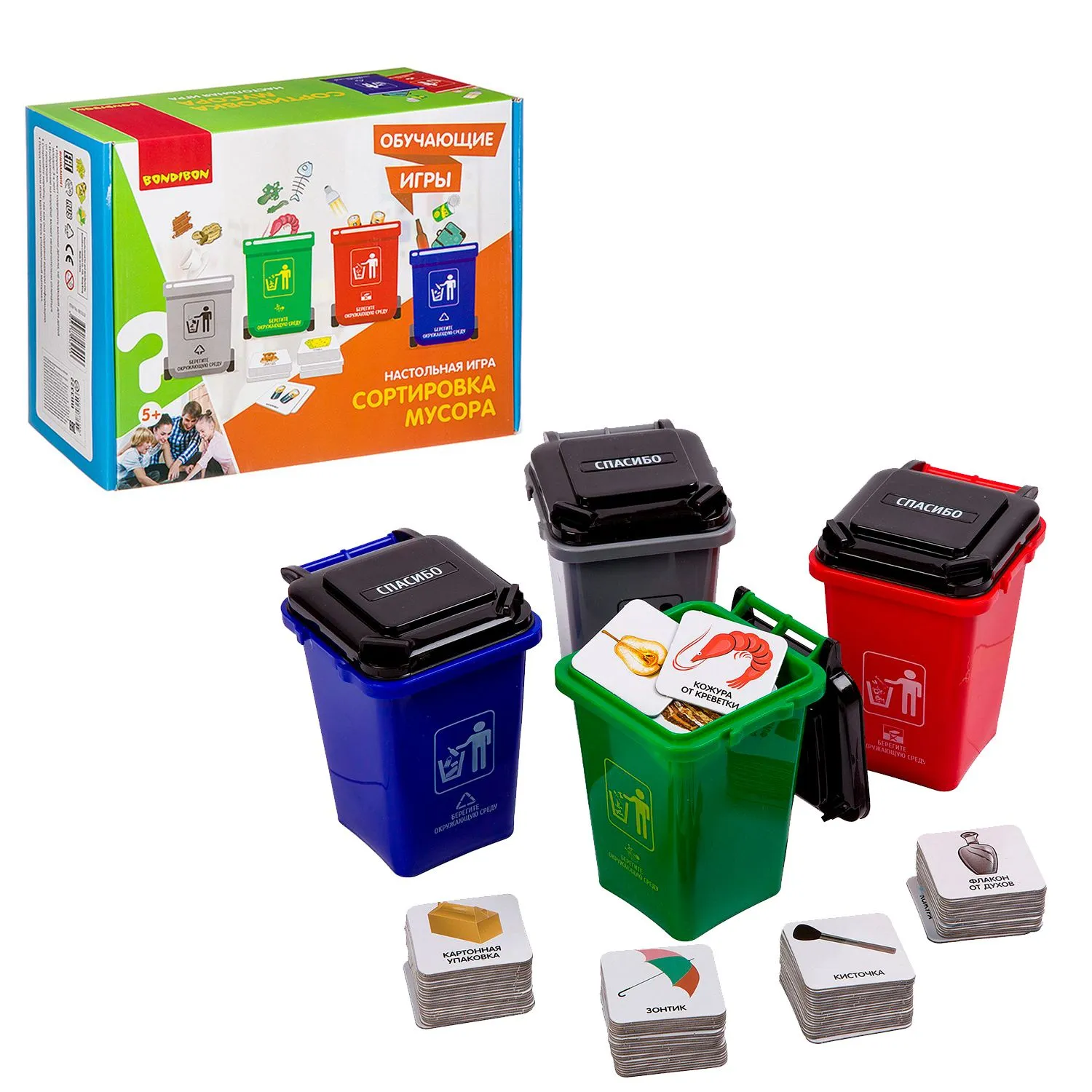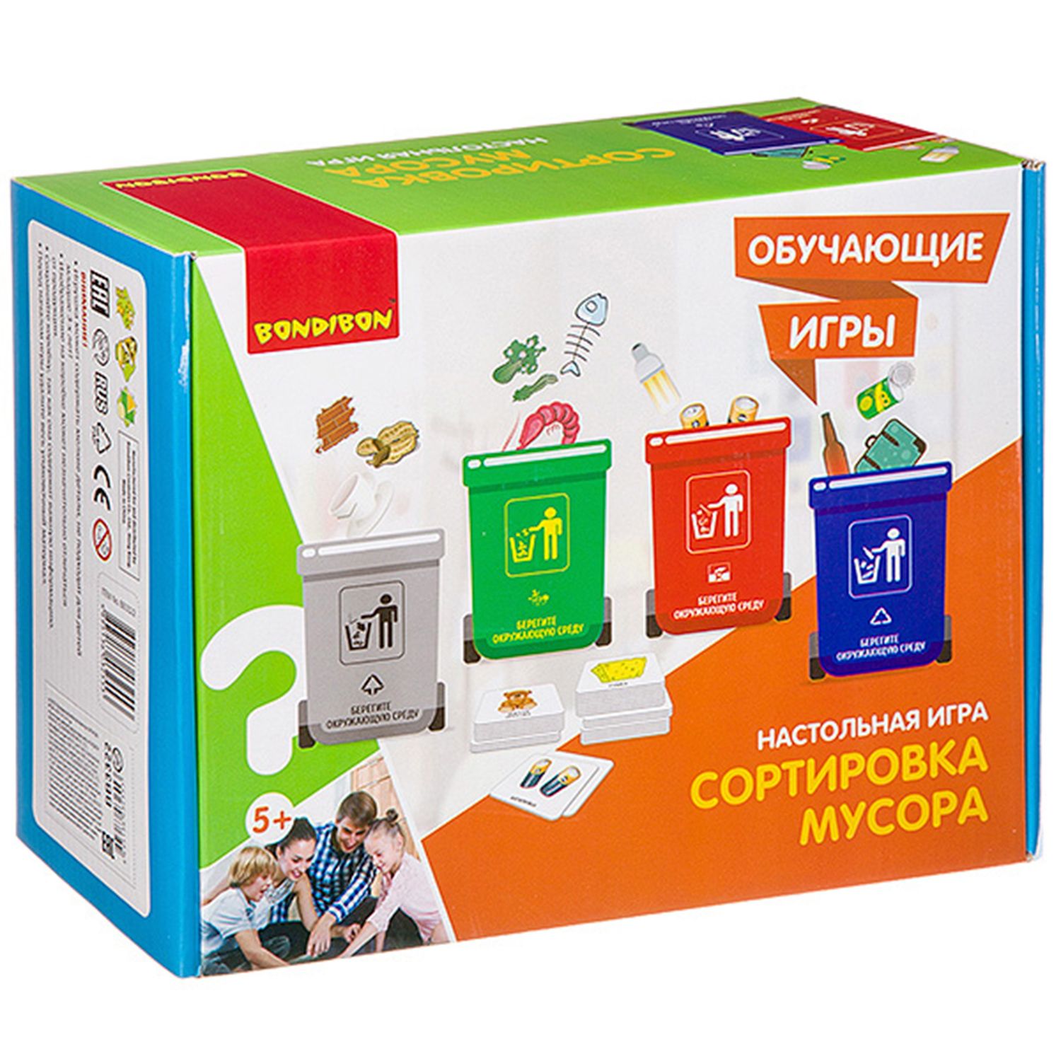 ВВ3322 Обучающие игры Bondibon Настольная игра «Сортировка мусора», Box 27,5х21,5х11,5 см