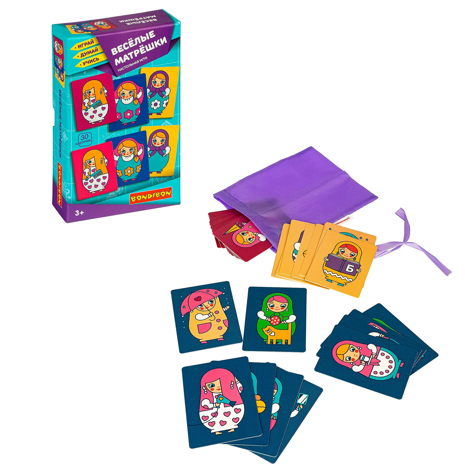 Настольная игра «ВЕСЁЛЫЕ МАТРЕШКИ» серии «Играй, думай, учись» от Bondibon направлена на развитие внимания и памяти детей