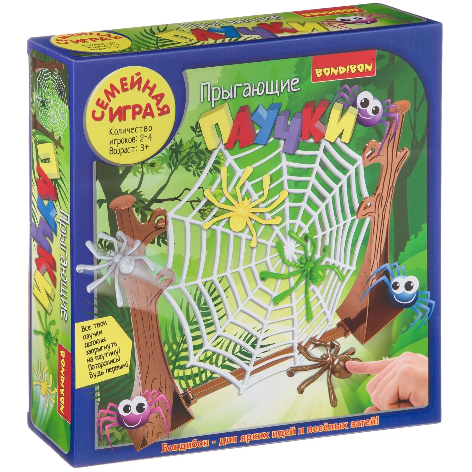 Настольная игра Bondibon "Прыгающие паучки" не оставит равнодушной как детей, так и взрозлых.