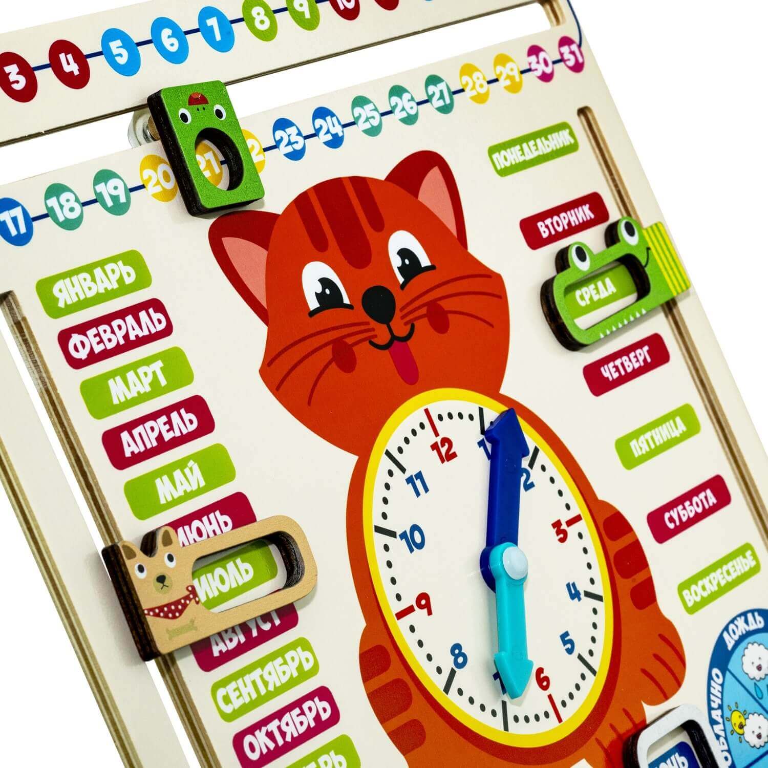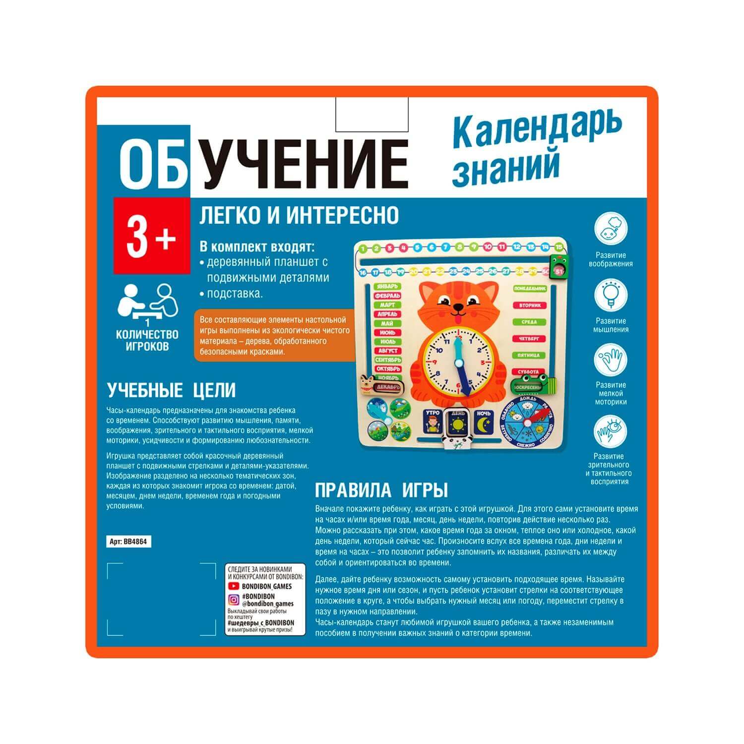 Обучающие чудо-часики Bondibon «КАЛЕНДАРЬ ЗНАНИЙ» — это яркий и функциональный деревянный планшет, который превращает изучение времени в увлекательную игру.