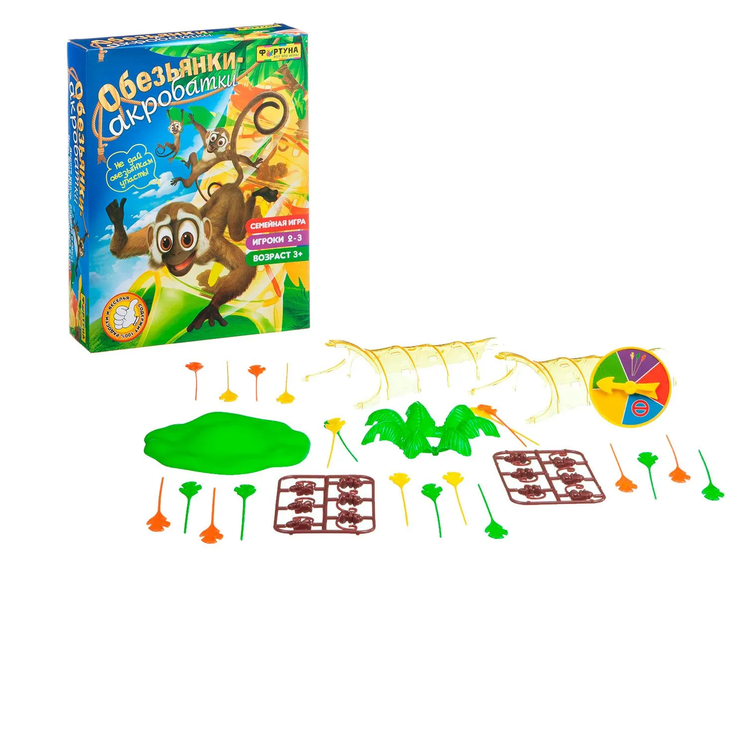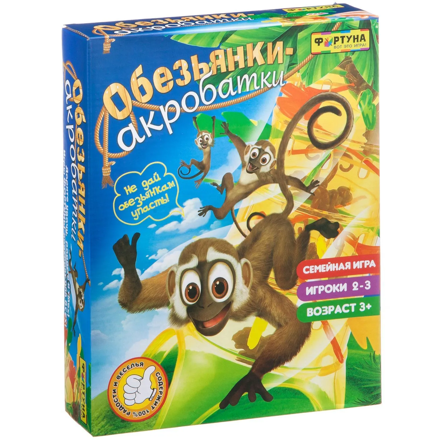 Осторожно вытягивайтецветные палочки из ствола пальмы, не давая обезьянкам упасть с дерева. Игра предназначена для 2-3 игроков.