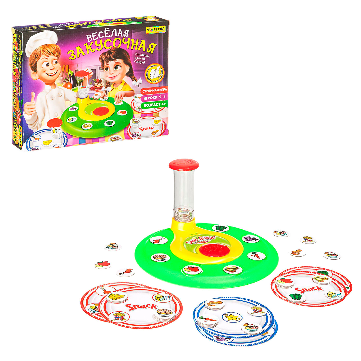 - три простых шага в этой игре: назвать продукт, взять фишку, перевернуть её на тарелке