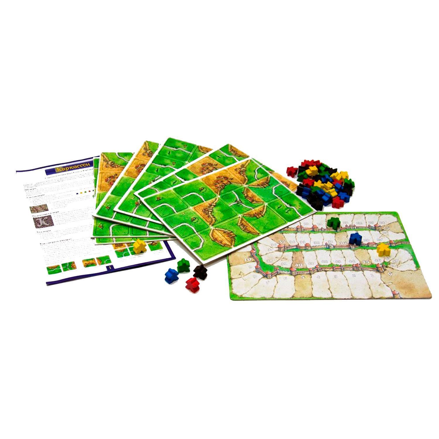 - ход за ходом участники партии создают уникальное игровое поле при помощи специальных квадратов, на которых изображены города, монастыри, дороги и поля