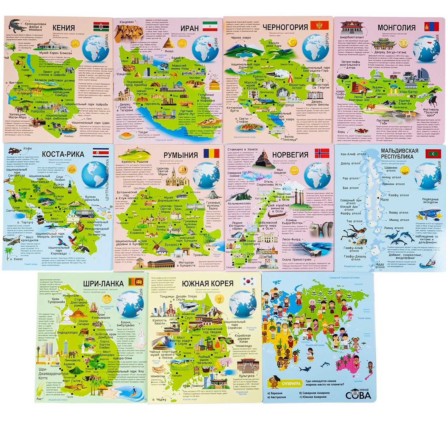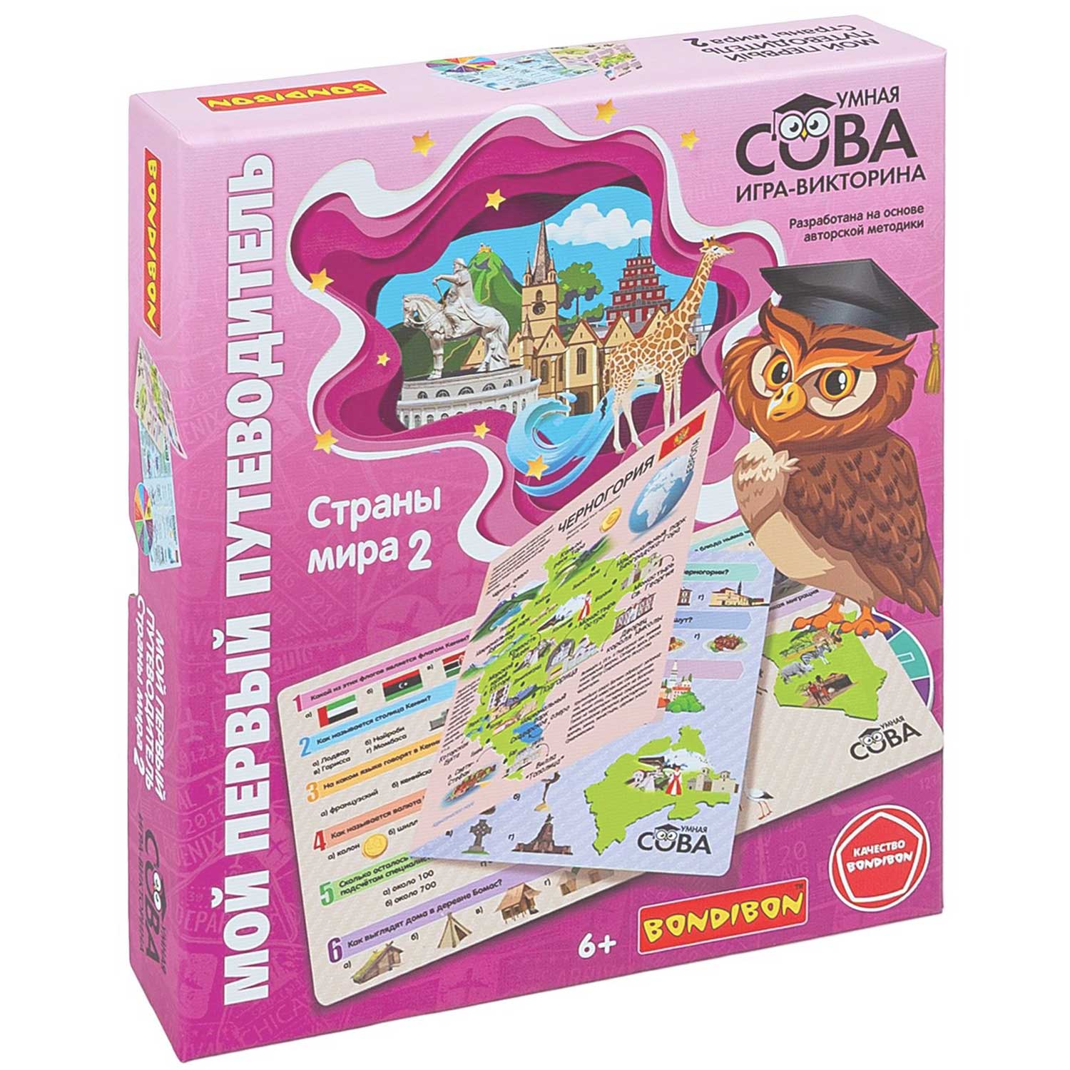 Погрузитесь в захватывающее кругосветное путешествие вместе с игрой-викториной "МОЙ ПЕРВЫЙ ПУТЕВОДИТЕЛЬ. Страны Мира 2" из популярной серии "Умная Сова" от Bondibon!