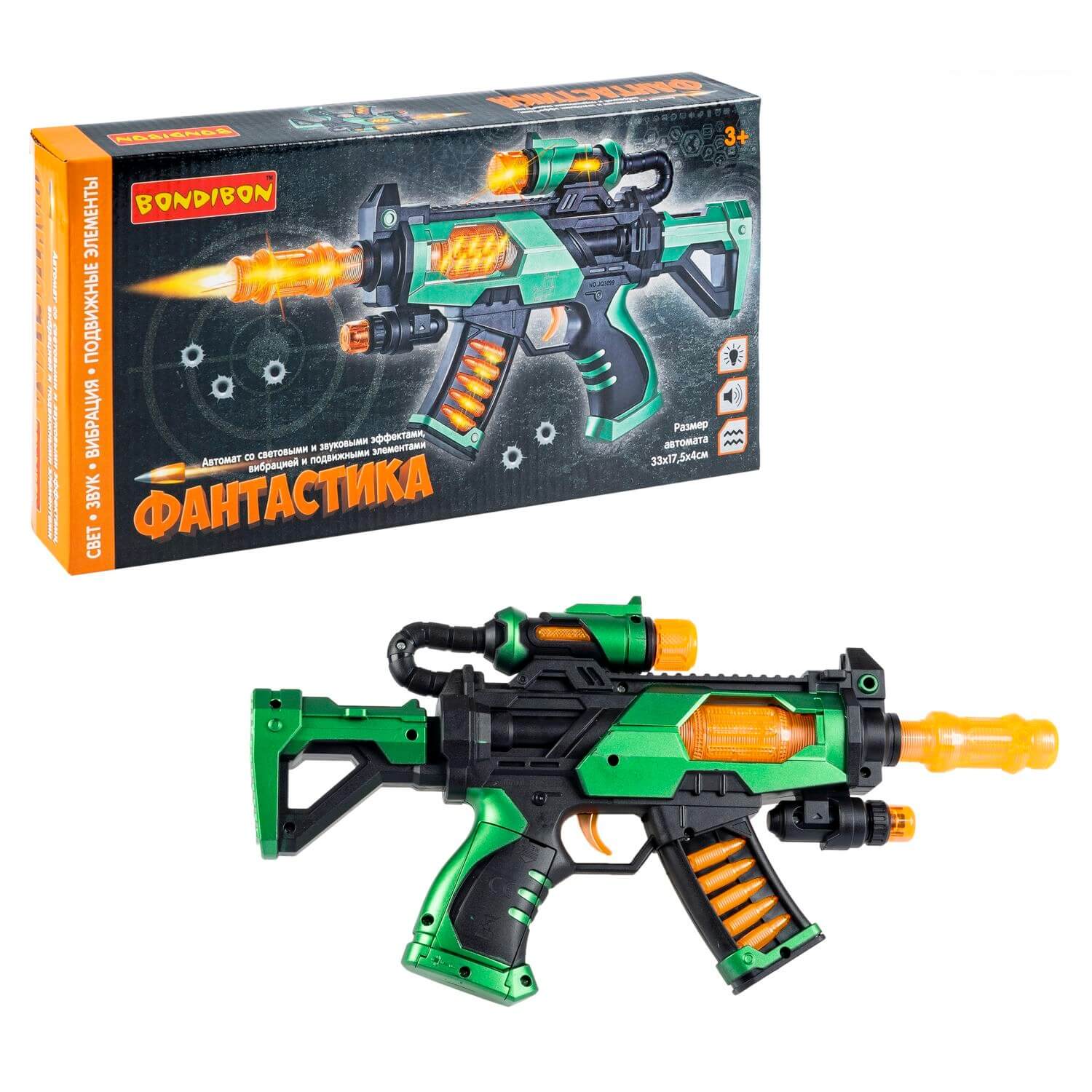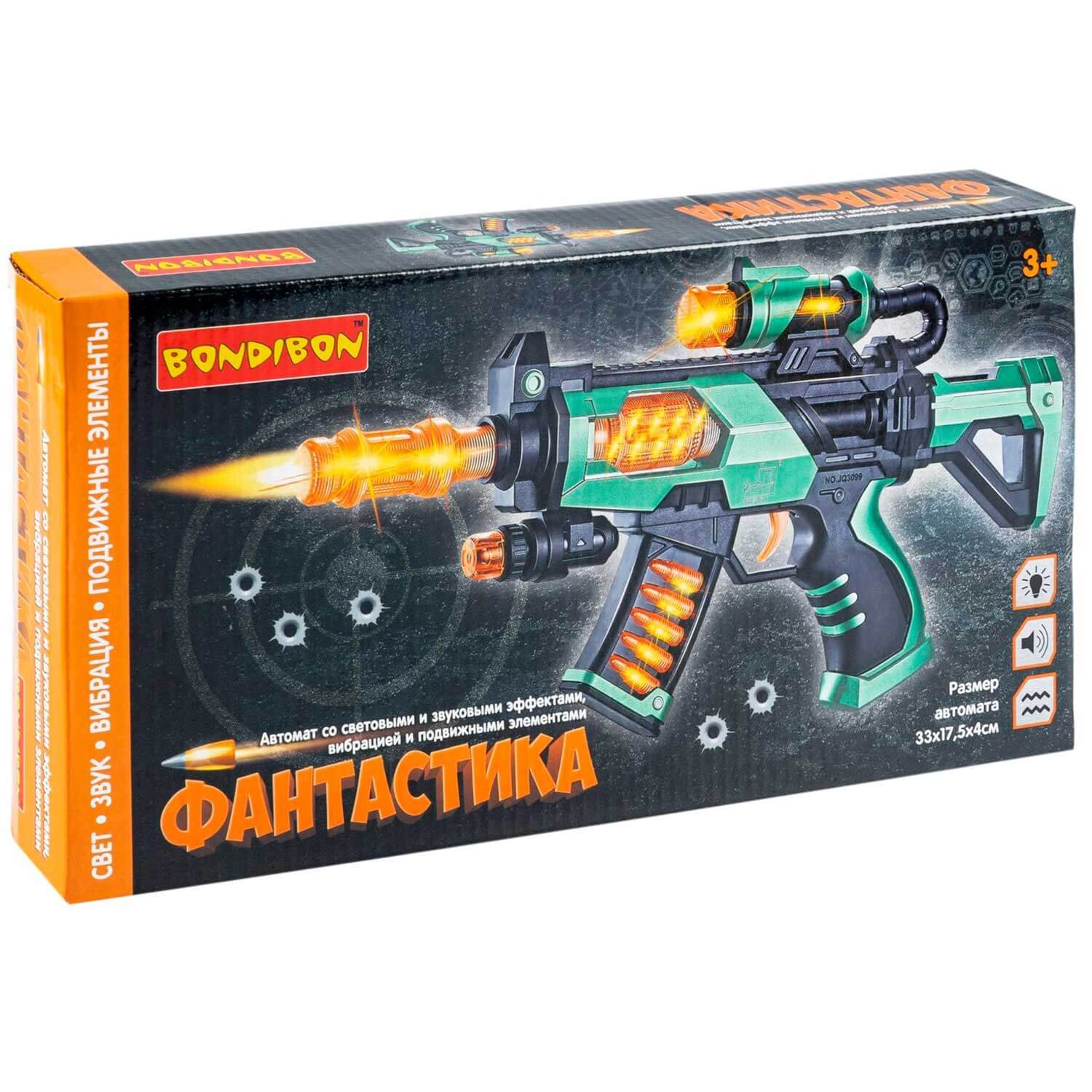 ВВ6151 Автомат Bondibon «ФАНТАСТИКА», свет, звук, вибрация, подвижное дуло, 33х17,5х4см