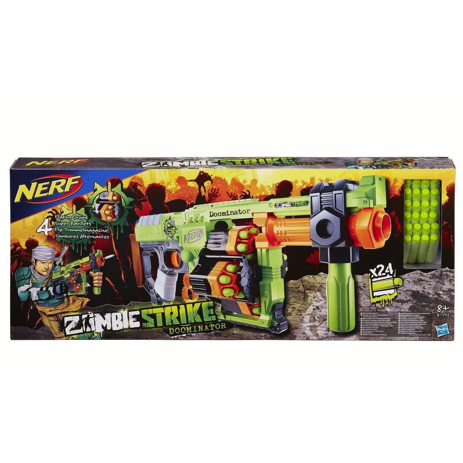 - бластер Нёрф Зомби Страйк Ордовик с 4-мя шестизарядными барабанами