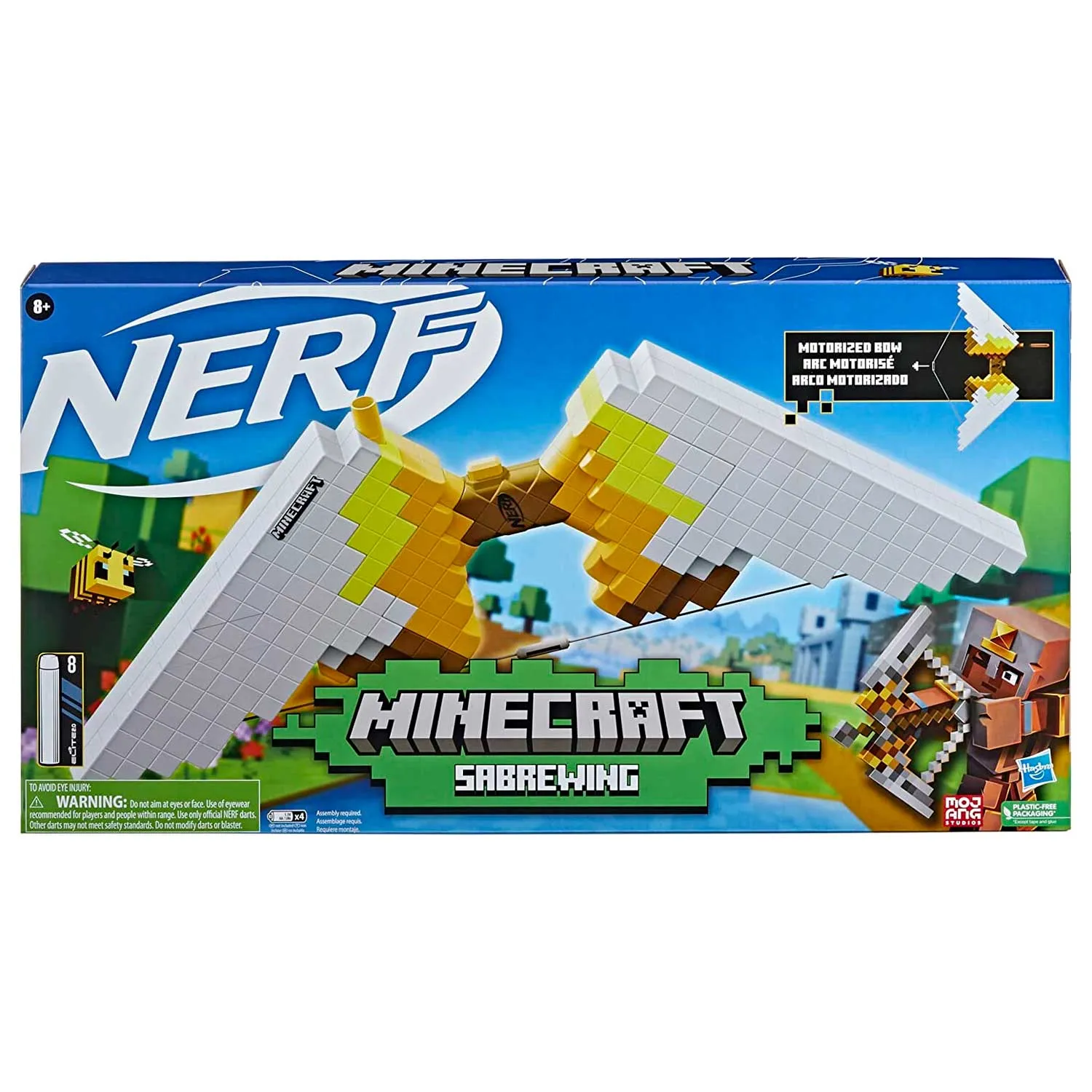 - для запуска двигателя Nerf Minecraft Sabrewing, потяните тетиву, и потом нажмите кнопку спуска, чтобы выстрелить