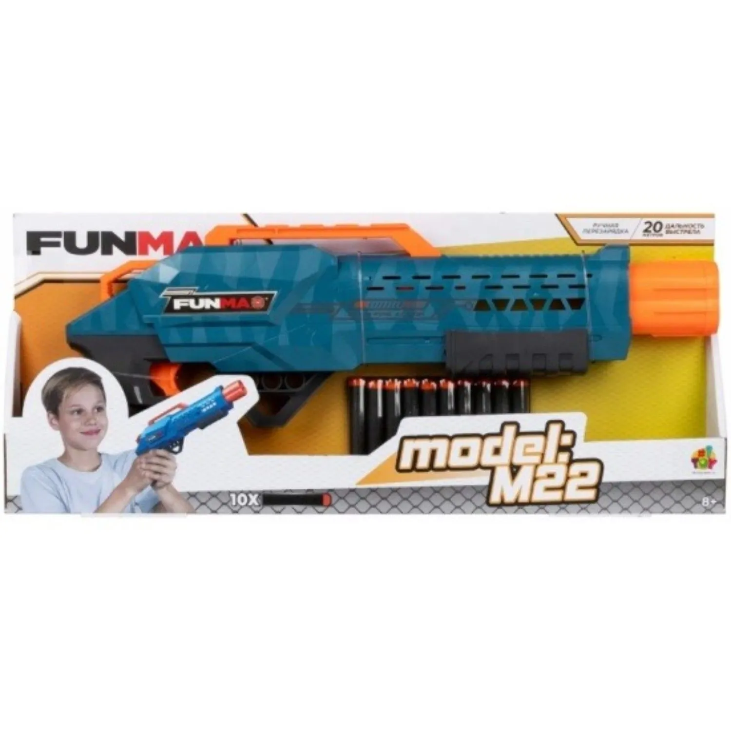 - бластер Funmax M22 оснащён помповым механизмом