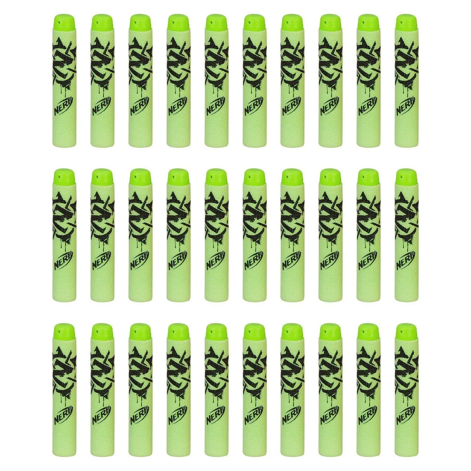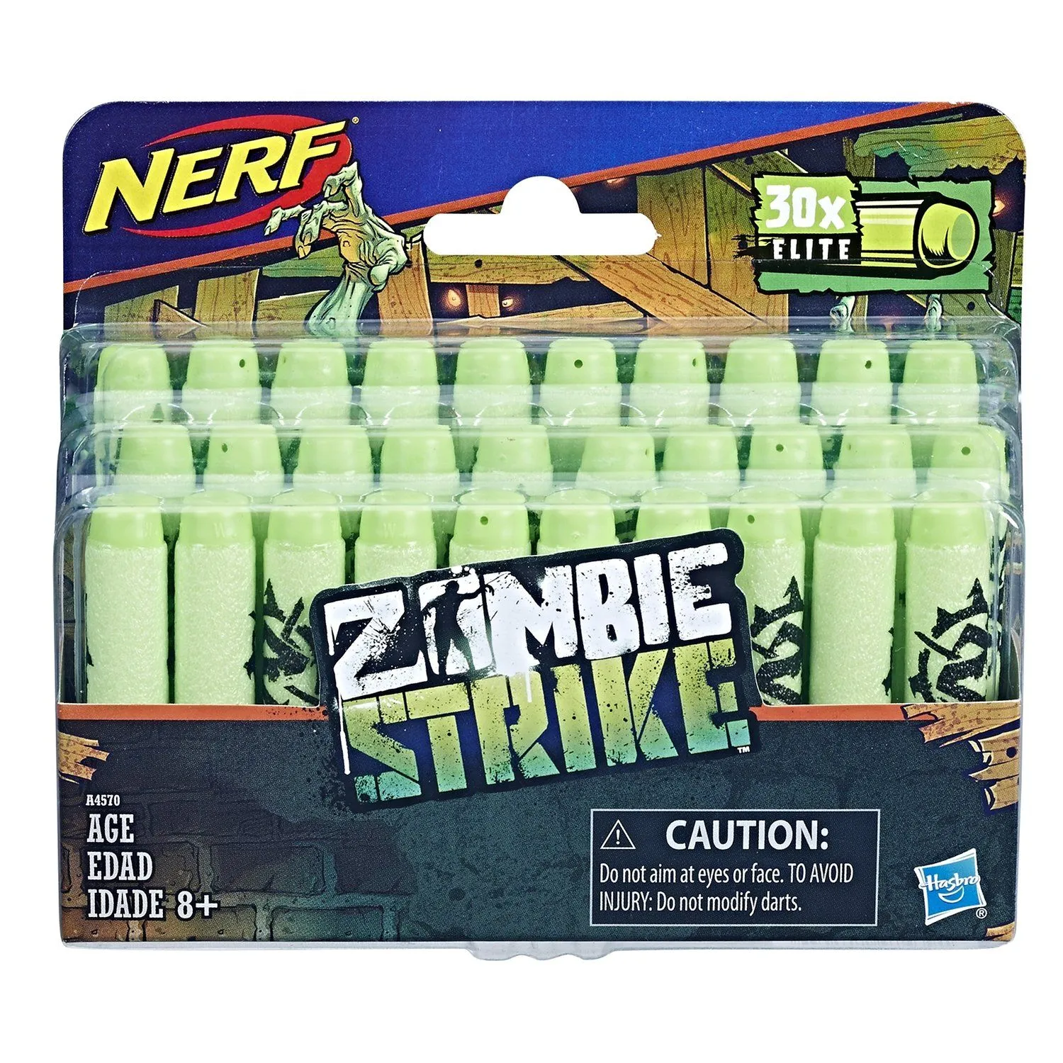 - Патроны из серии Zombie Strike отличаются внешне от привычных сине-оранжевых патронов зеленой раскраской, но имеют ту же форму, а это значит, что они подойдут для любого оружия NERF