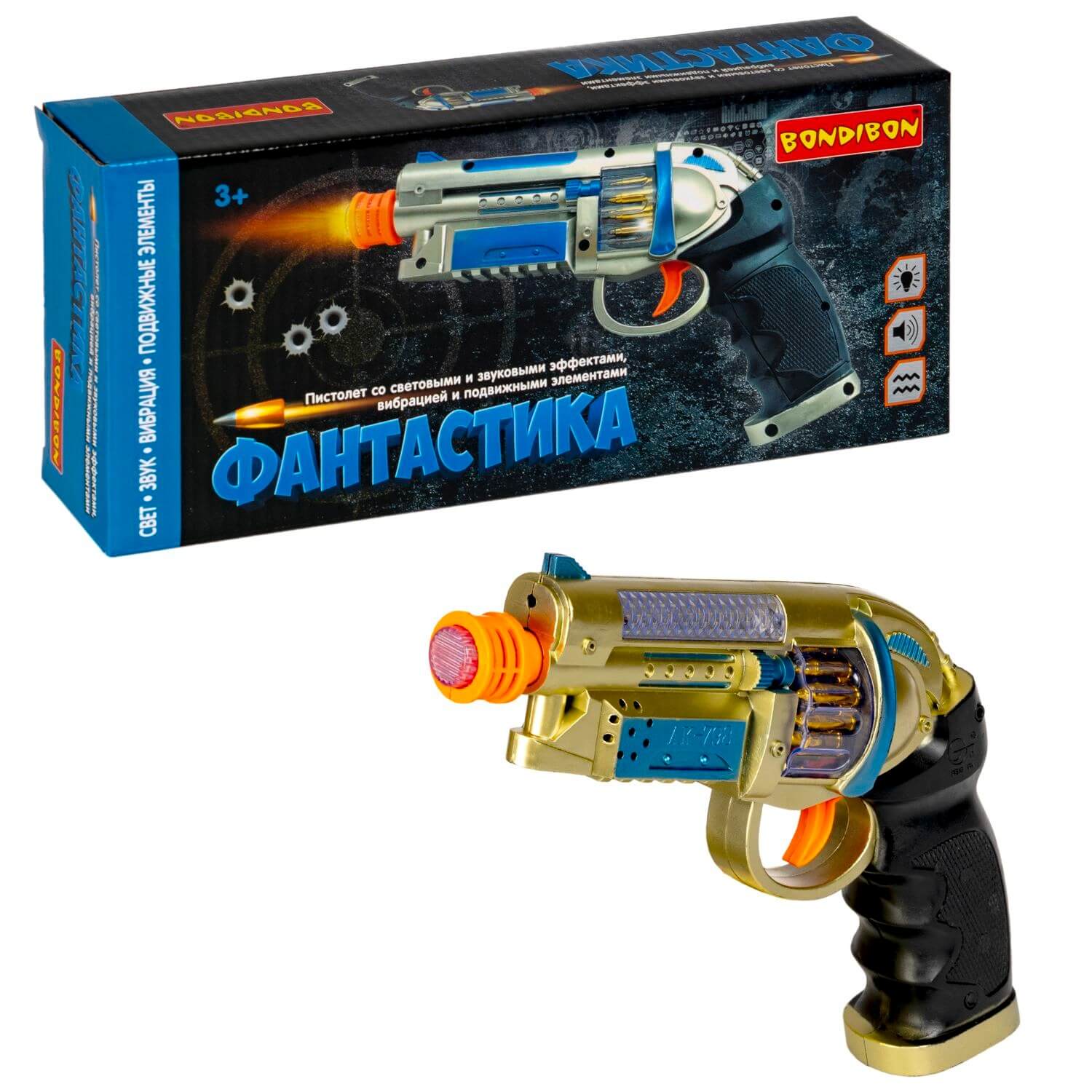 ВВ5581 Пистолет Bondibon «Фантастика», свет, звук, вибрация, подвижные элементы