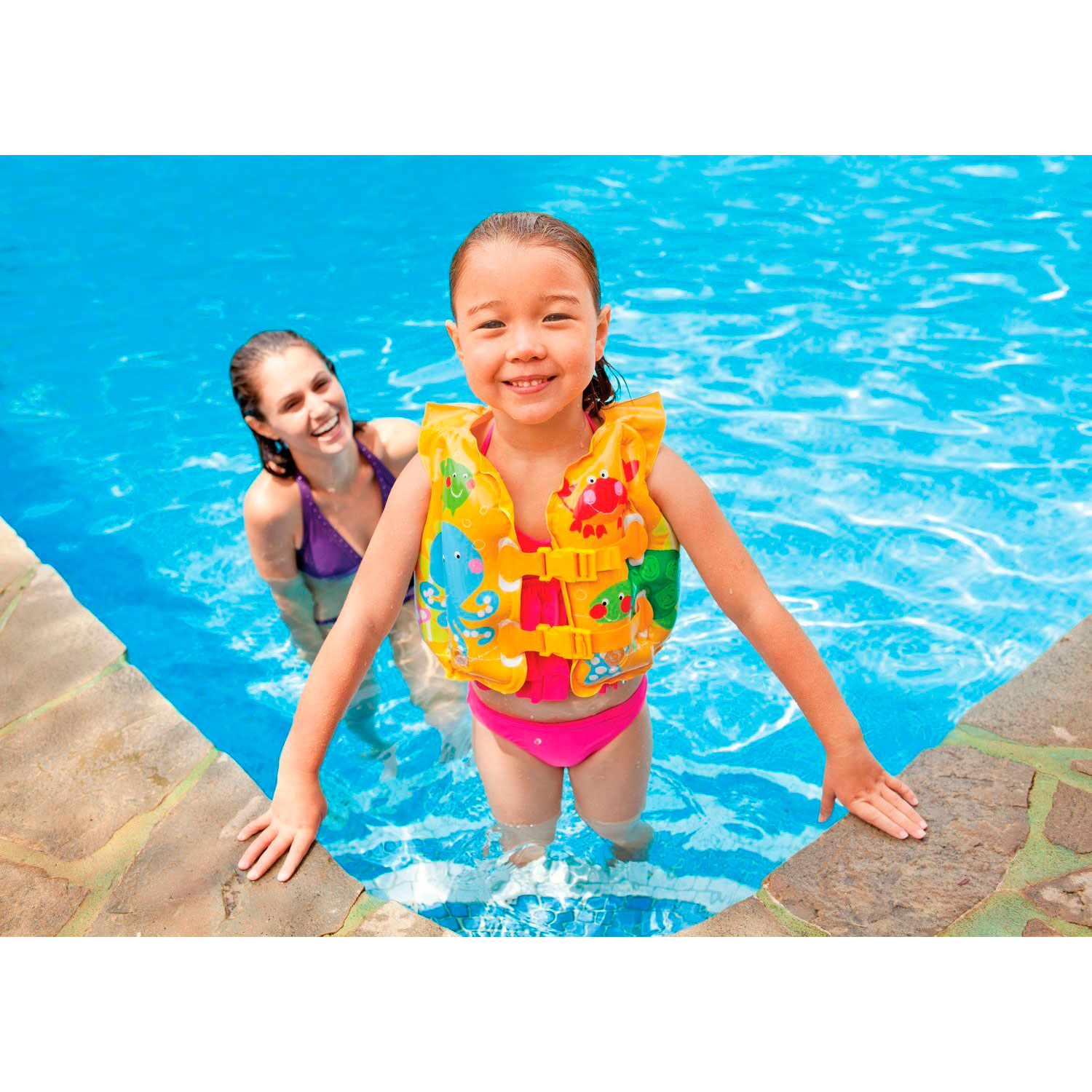 Этот яркий надувной жилет ваш ребенок сможет передать по наследству своим младшим братьям и сёстрам.