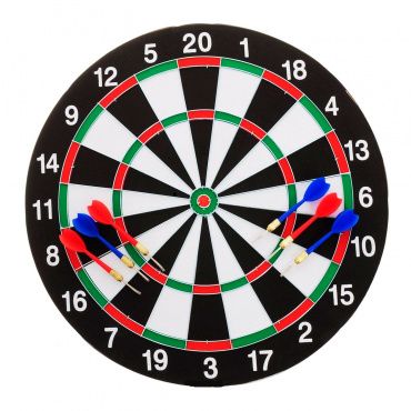 - на мишени изображены сектора с числовым обозначением количества очков за попадание в данных сектор