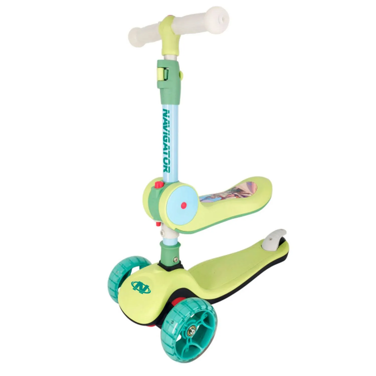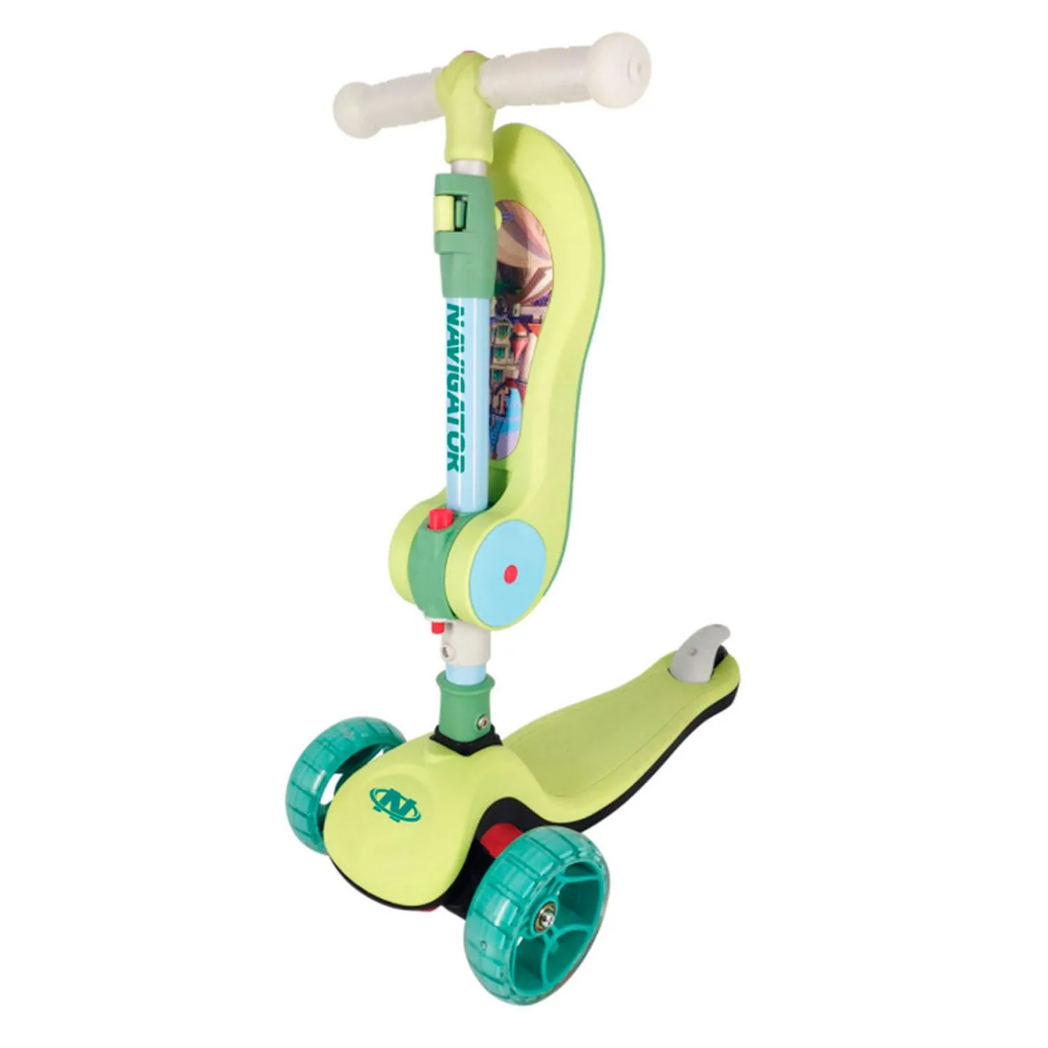 - самокат имеет удобное складное сиденье, благодаря чему может использоваться как каталка