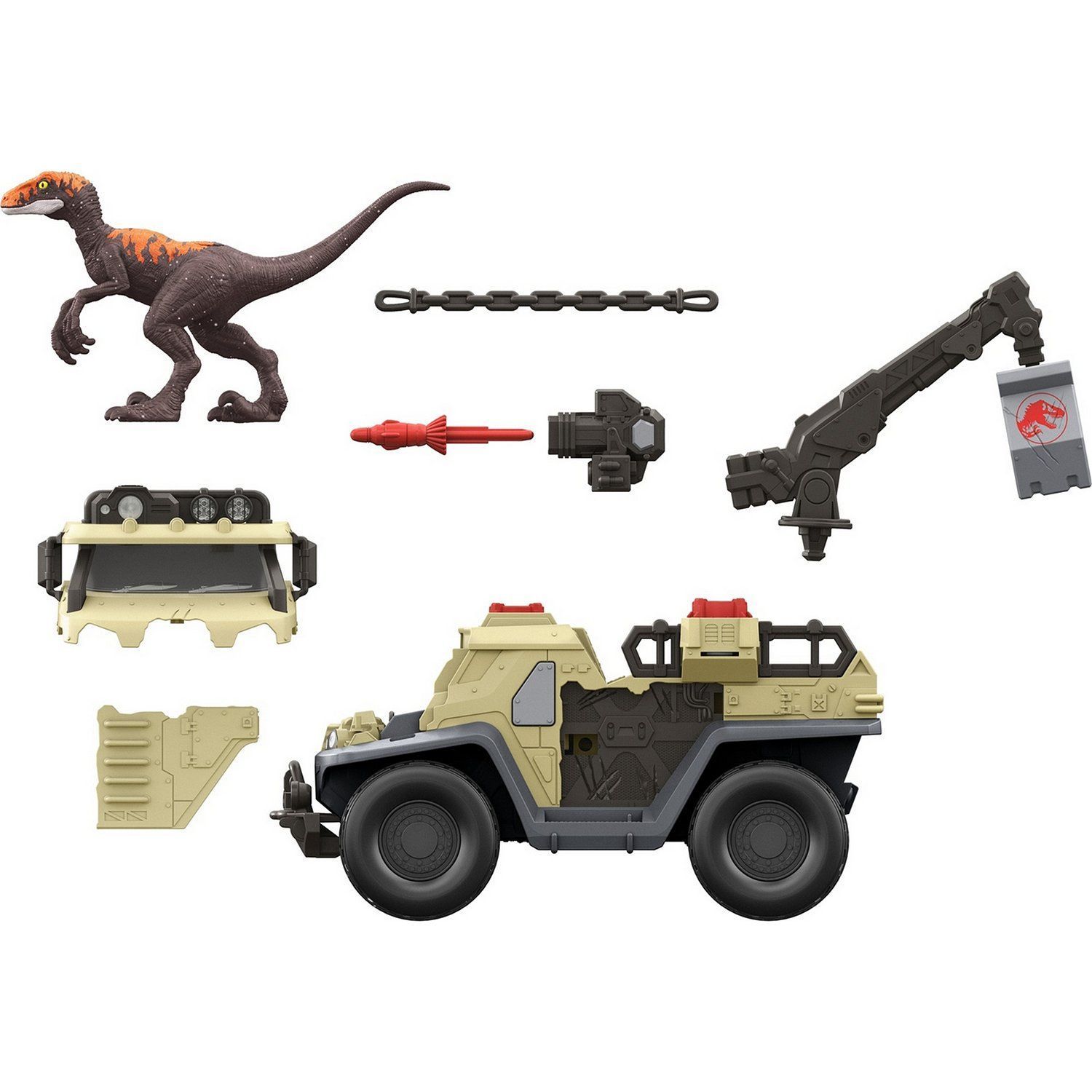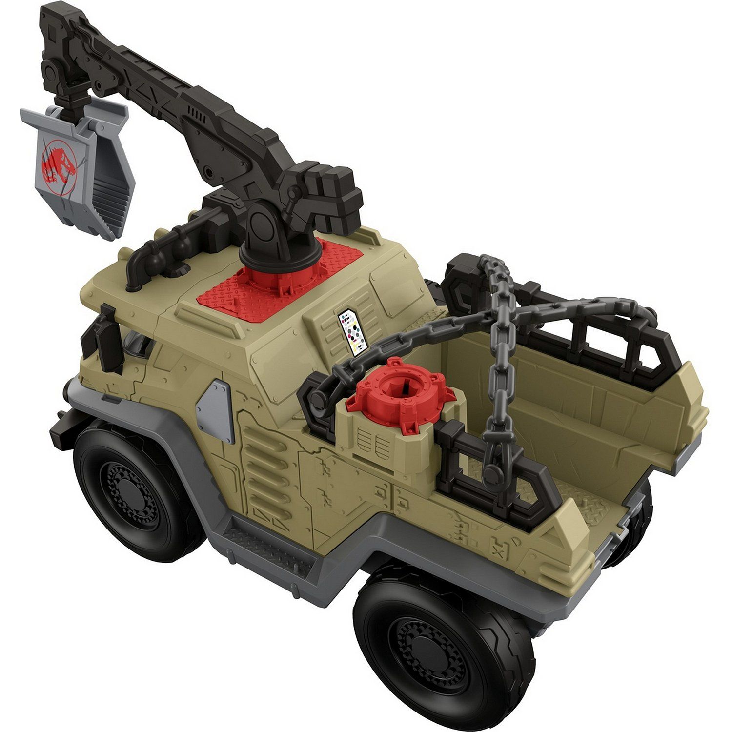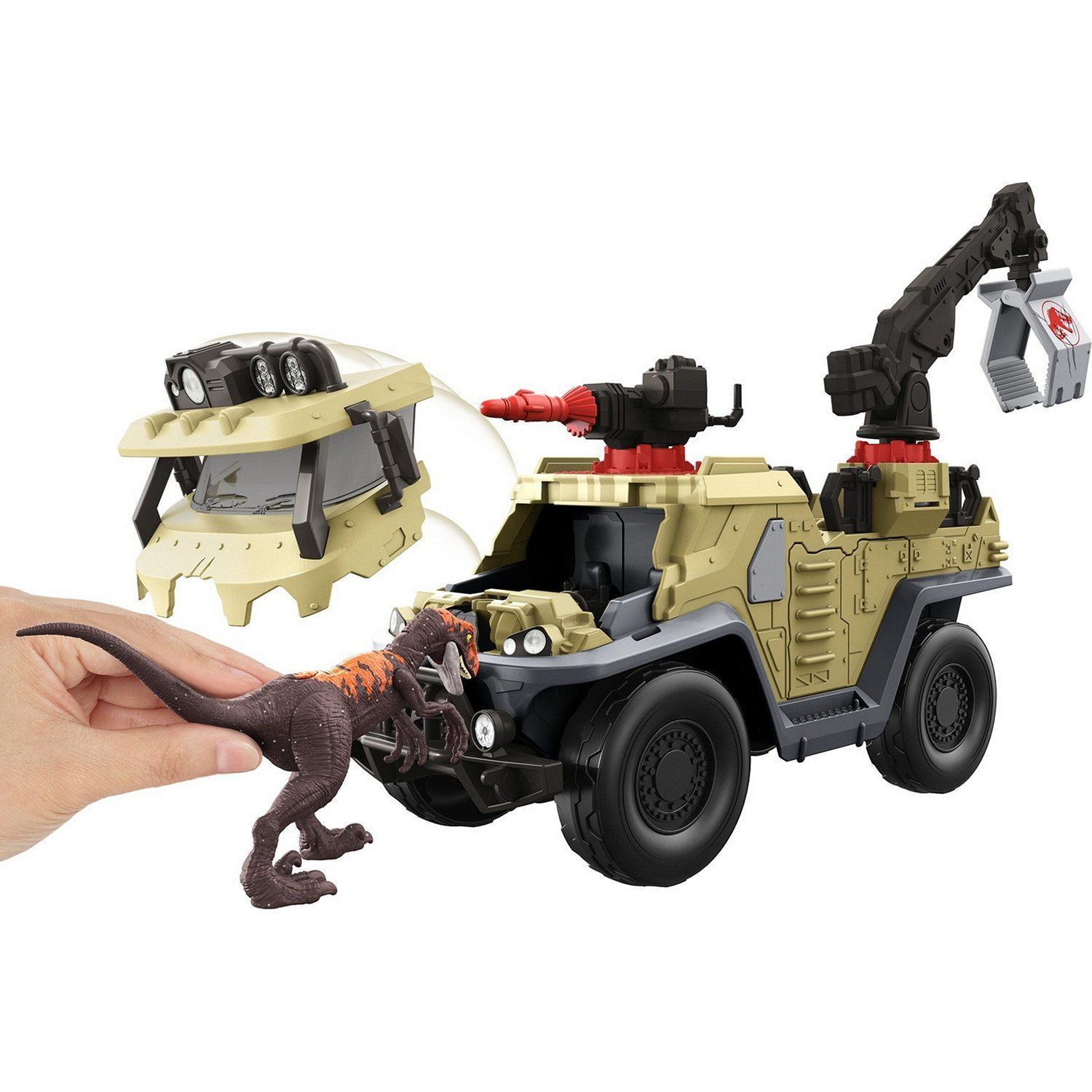 - грузовик с вращающимися колесами оборудован бластером и дротиком с транквилизатором, а также краном для перемещения плененного динозавра
