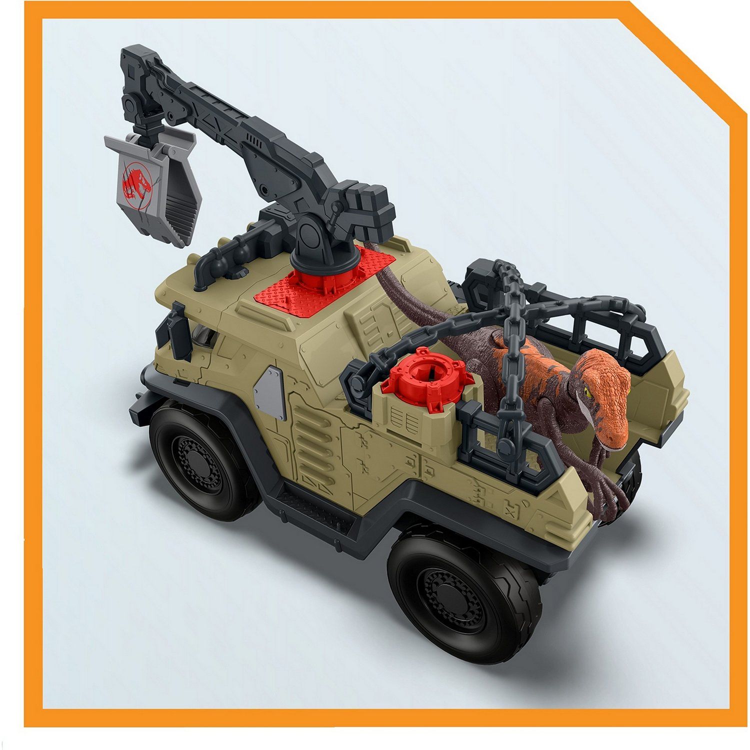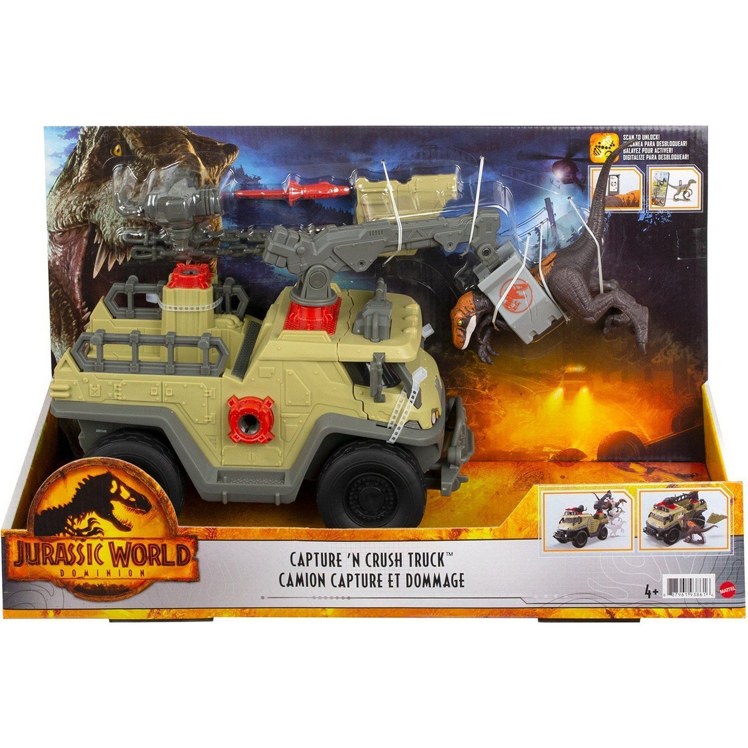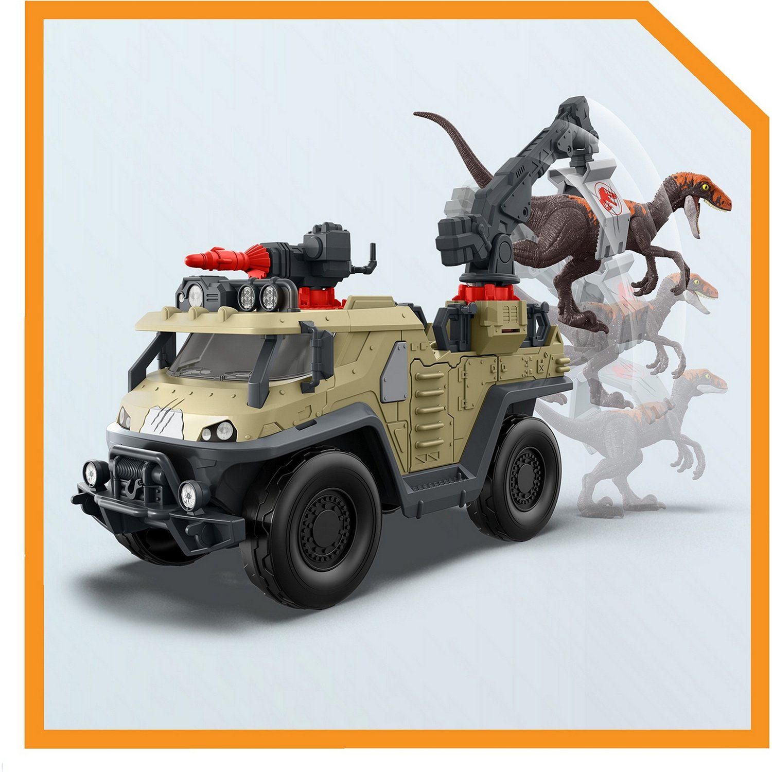 - грузовик с вращающимися колесами оборудован бластером и дротиком с транквилизатором, а также краном для перемещения плененного динозавра