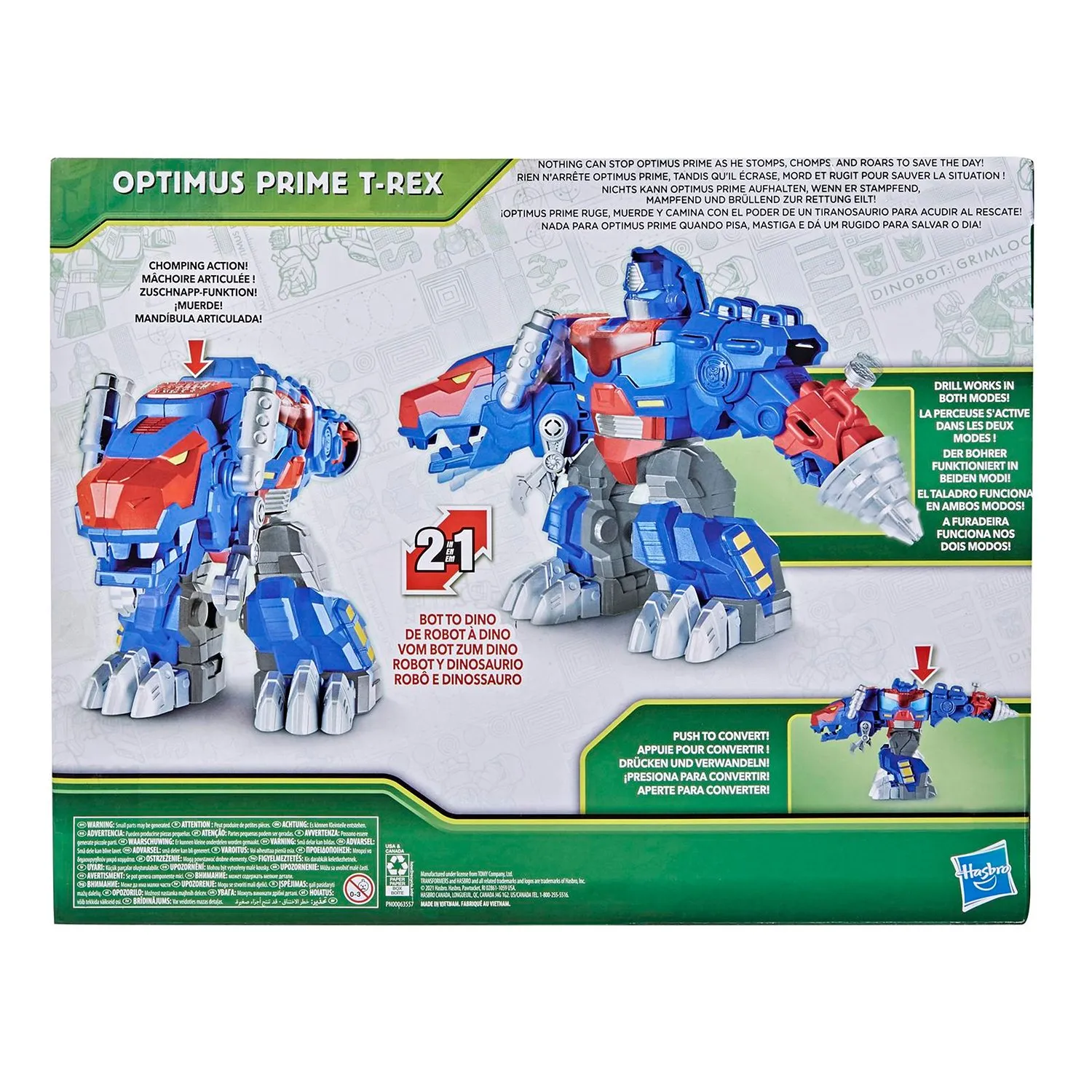 - нажмите кнопку на спине Оптимуса Прайма в режиме динозавра, чтобы он продемонстрировал свой укус, сопровождаемый звуковыми и световыми эффектами