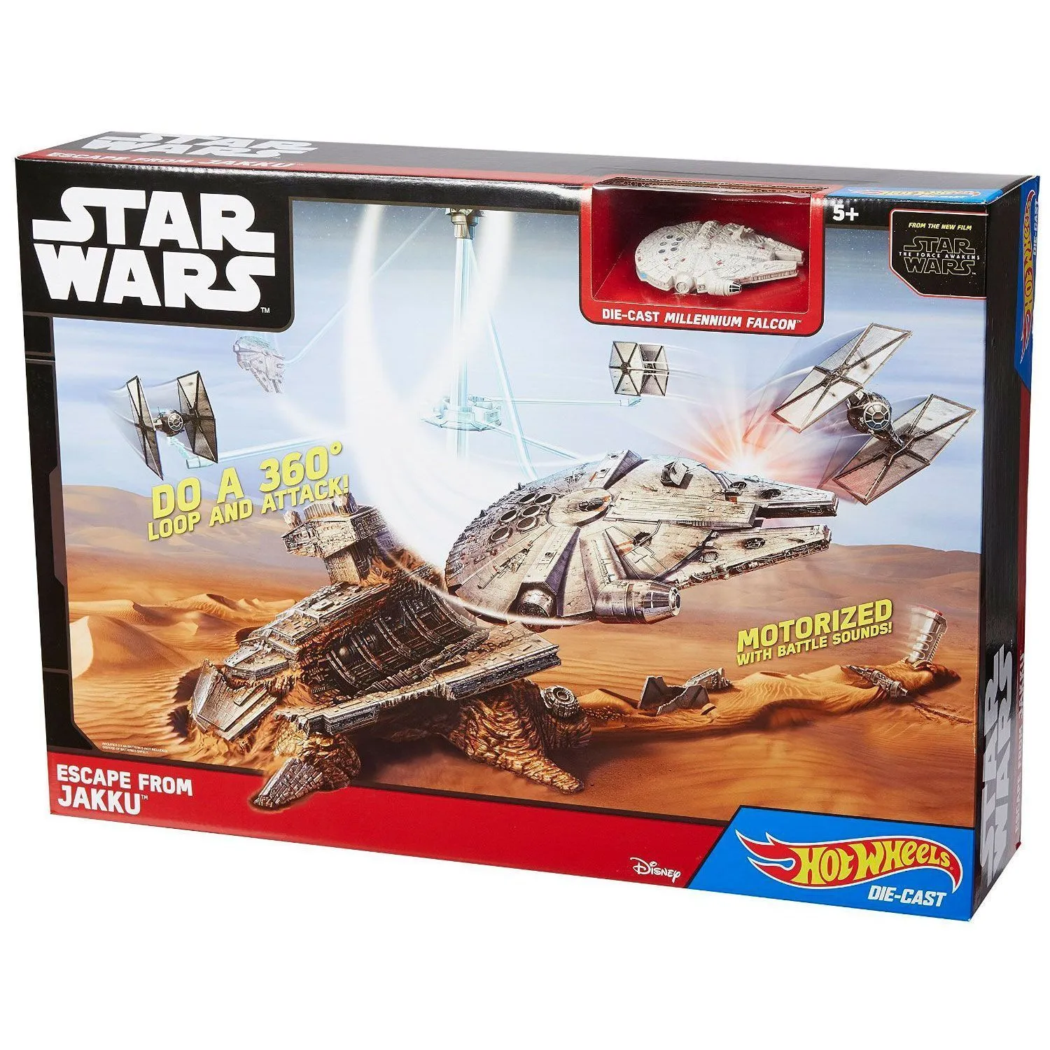 С этим игровым набором Хот Вилс "Побег с Джакку" вы сможете воспроизвести один из самых драйвовых моментов седьмого эпизода "Звездных войн" ("Пробуждение силы")
