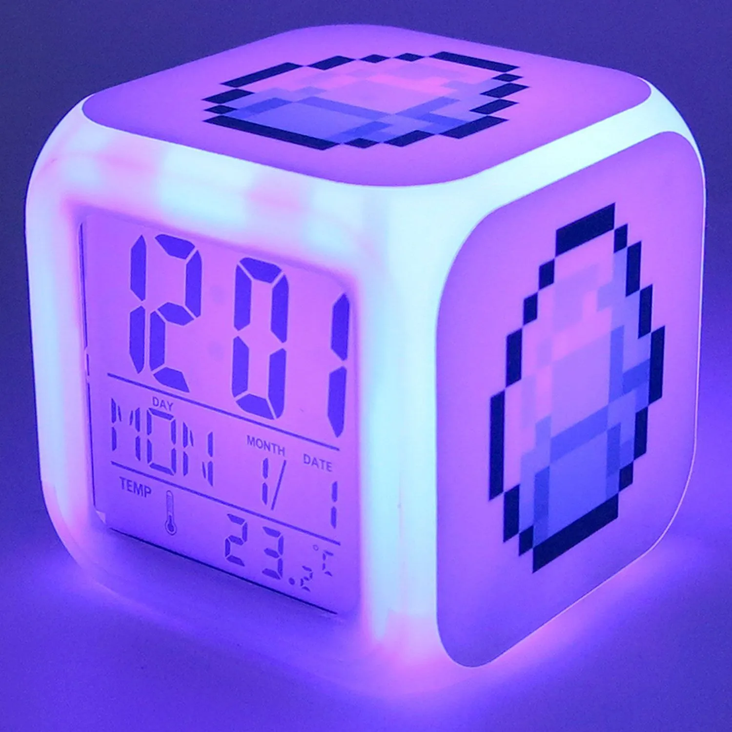 - оригинальные и функциональные часы, оформленные в пиксельном стиле с изображением алмазной руды порадуют настоящего фаната