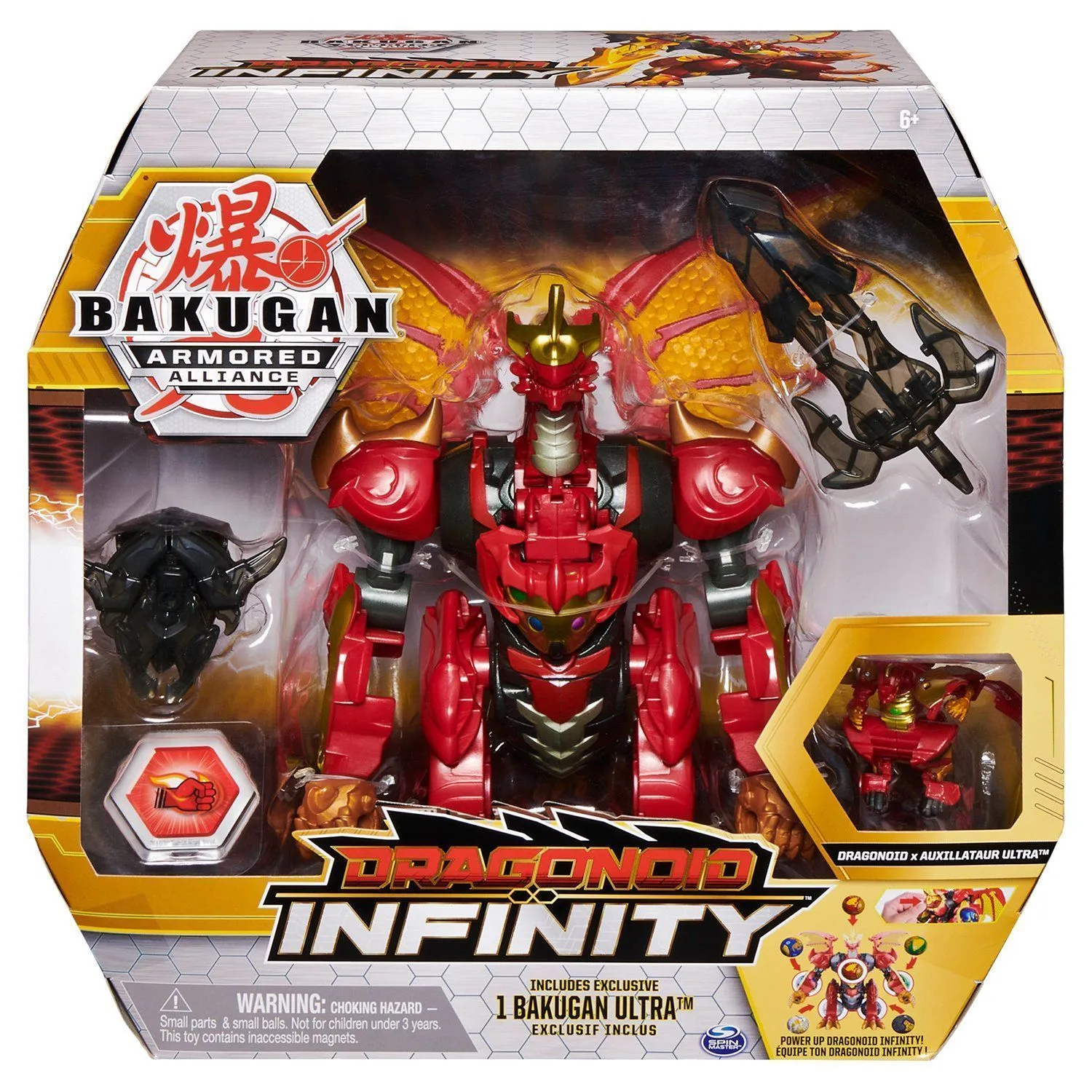 - загрузи Бакуганов в руки и ноги Драгоноида Инфинити и вставь Драгоноида-Оксиллатора в его грудь, чтобы увидеть трансформацию головы и крыльев Драгоноида Инфинити