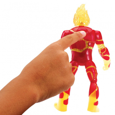 Игра по мотивам любимого фантазийного сериала «Ben10» с превосходно детализированной фигуркой мультипликационного героя Человек-огонь станет ещё зрелищней и реалистичной, благодаря световым эффектам и звуковому воспроизведению удара пришельца.