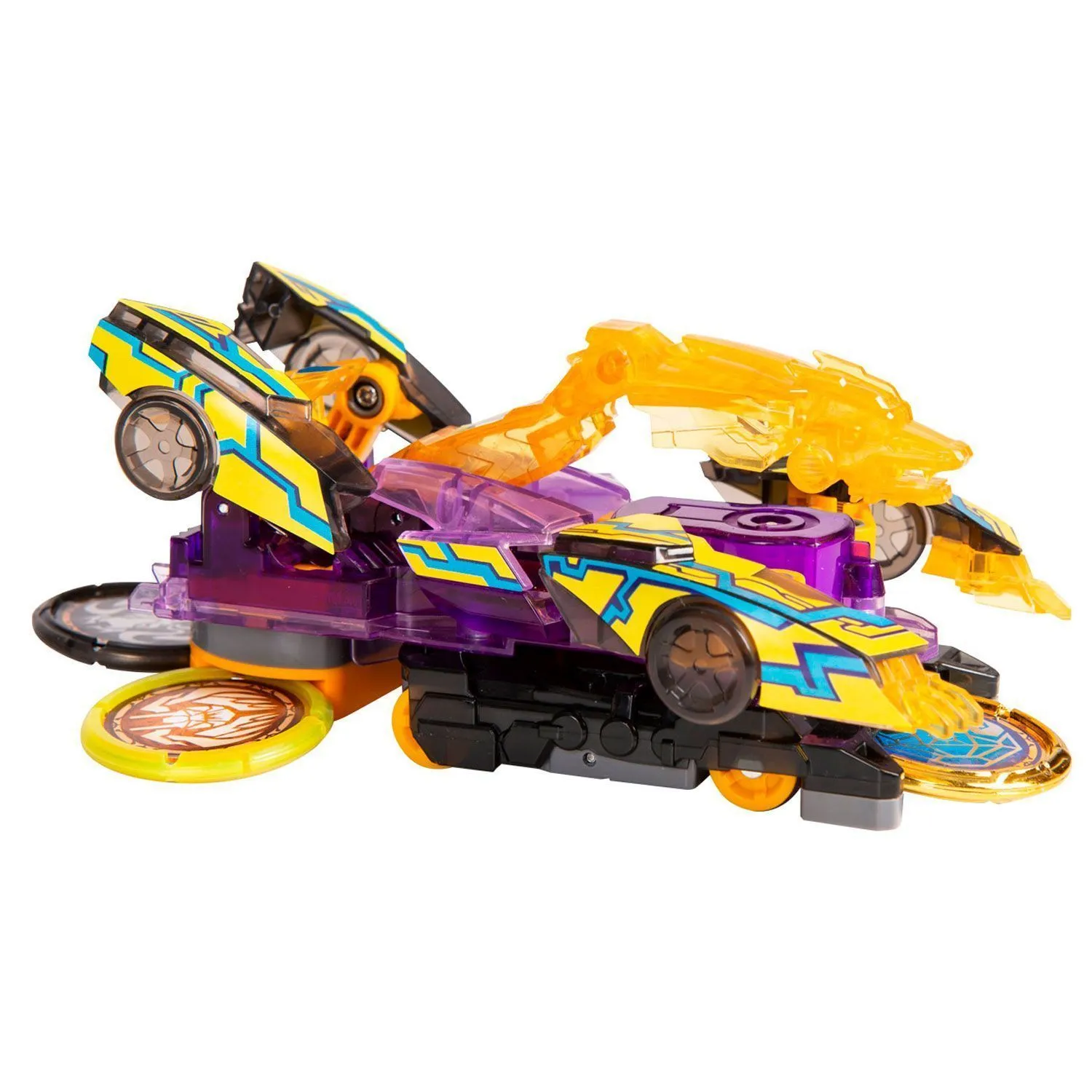 - машинка-трансформер трансформируется в зверя с помощью 4 специальных дисков, а также делает кувырок на 360 градусов