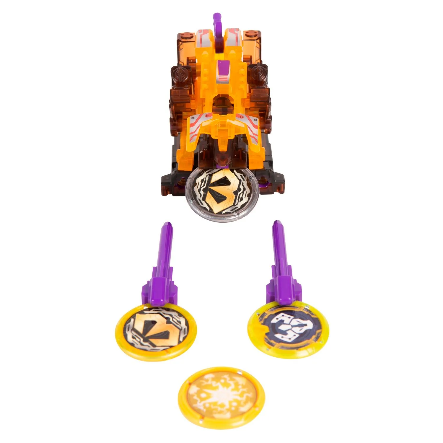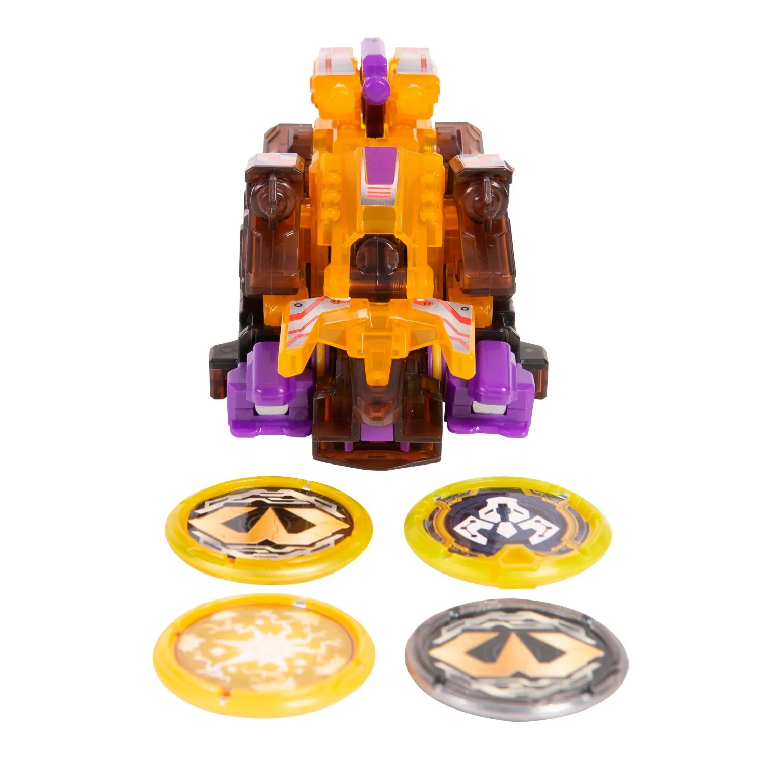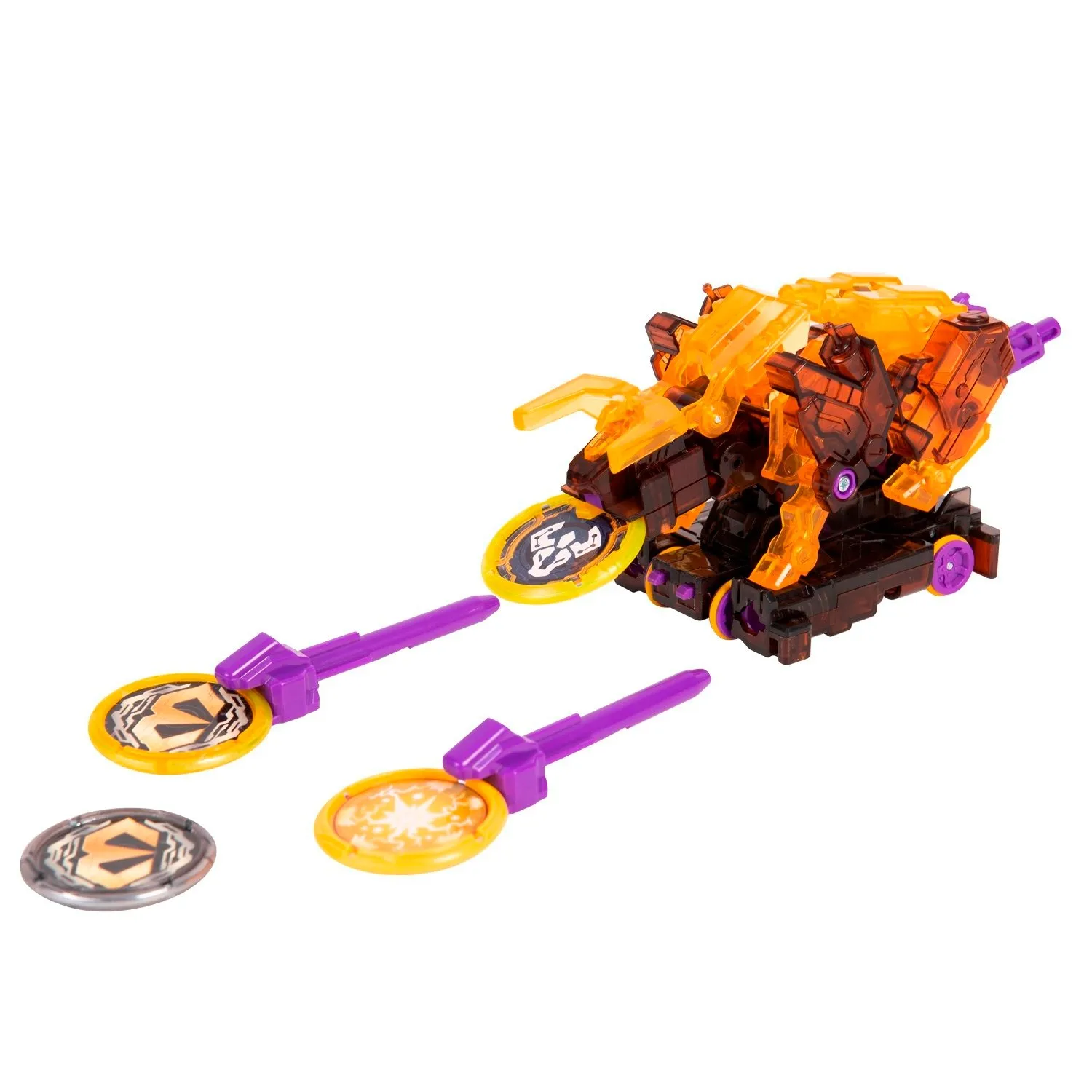 - машинка-трансформер трансформируется в зверя с помощью 2 специальных дисков, запускает стрелы а также делает кувырок на 360 градусов