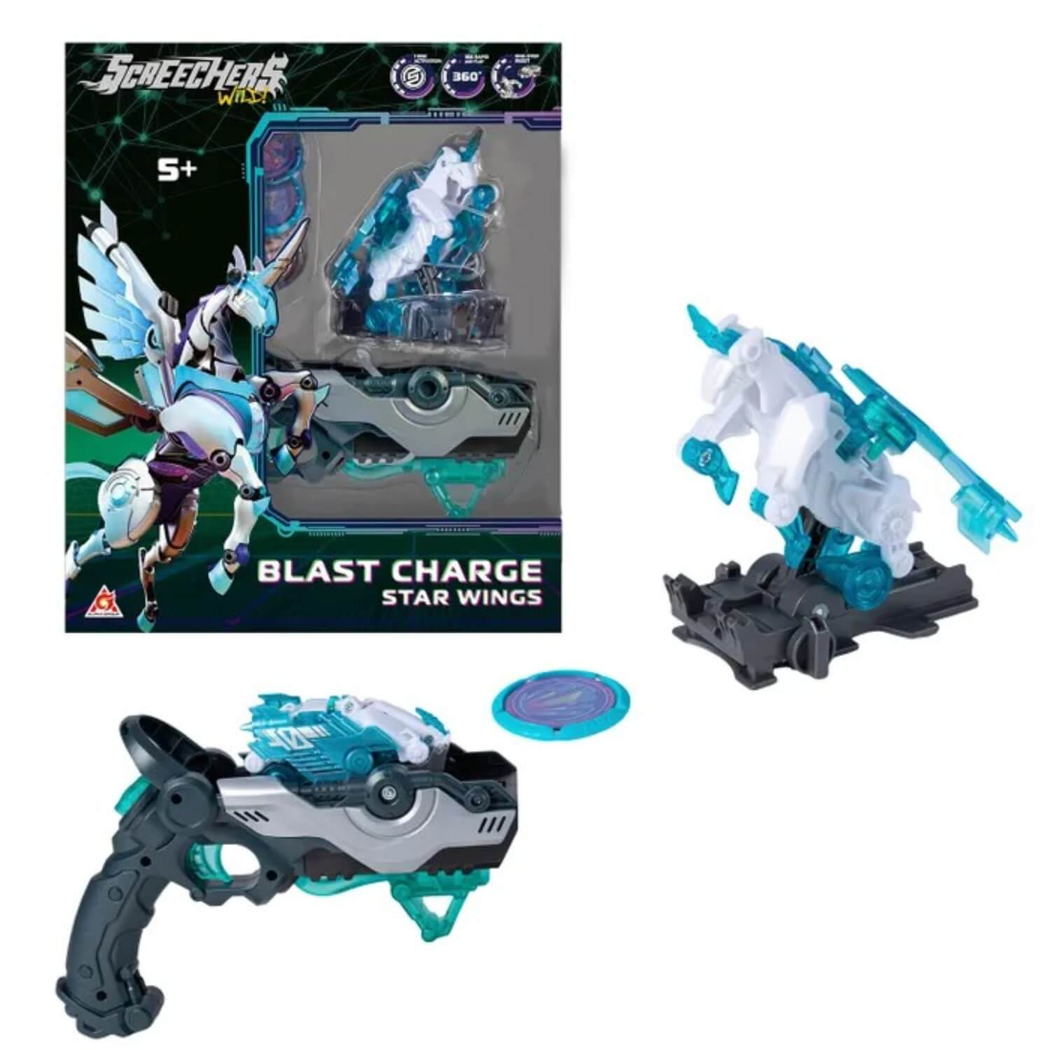 - Скричер-Бластер имеет 2 режима игры: стреляй дисками и запускай Скричера! Поймав диск, твой Скричер Стар Вингс сделает кувырок на 360° и трансформируется!