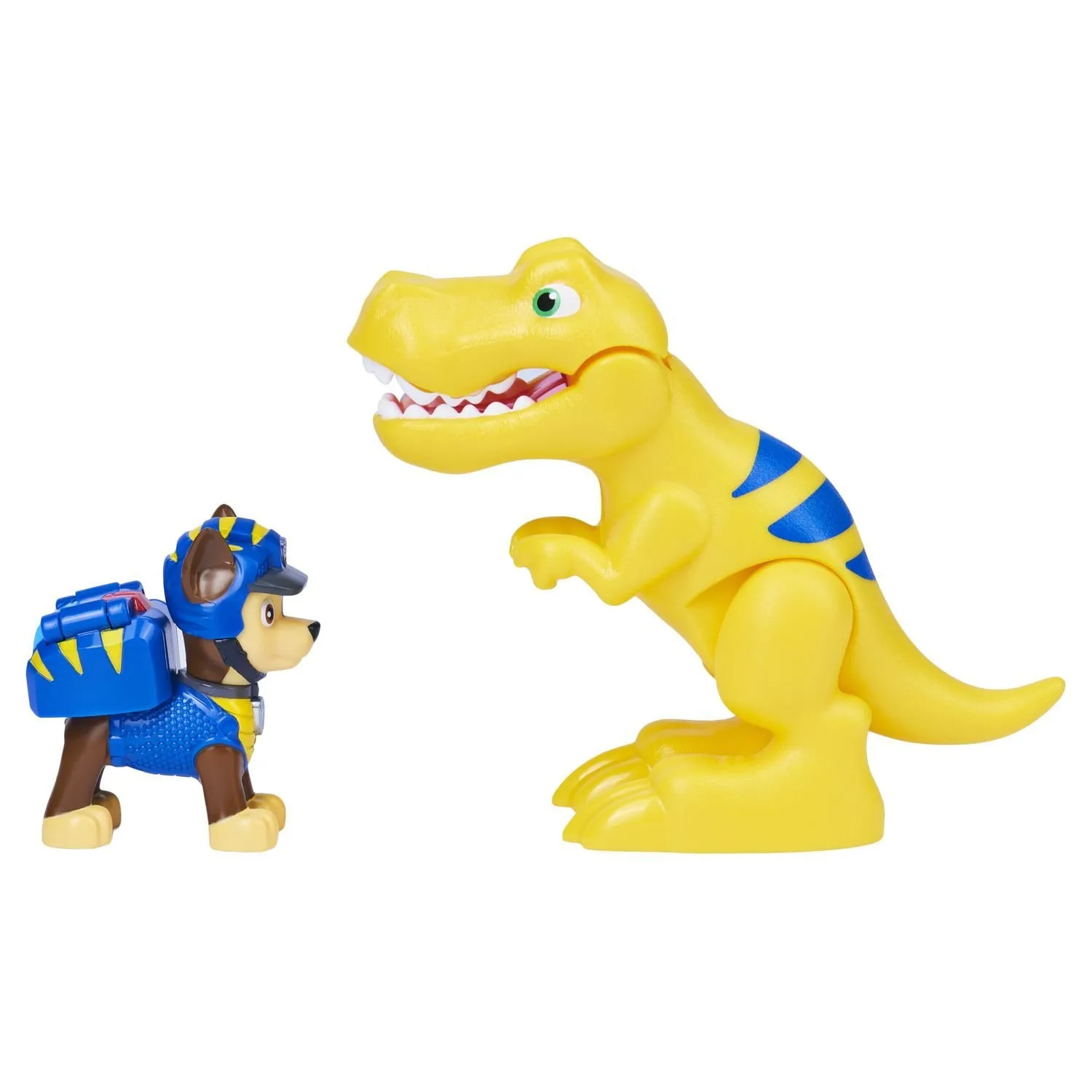 - в набор входит желтый динозавр Ти-рекс, при нажатии на хвост и он откроет пасть