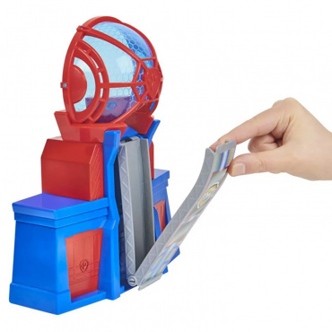 - чтобы спустить спасателей в их транспорт, поместите фигурку на верхнюю площадку за круглым стеклом, разложите спусковую дорожку, по которой фигурки будут скатываться
