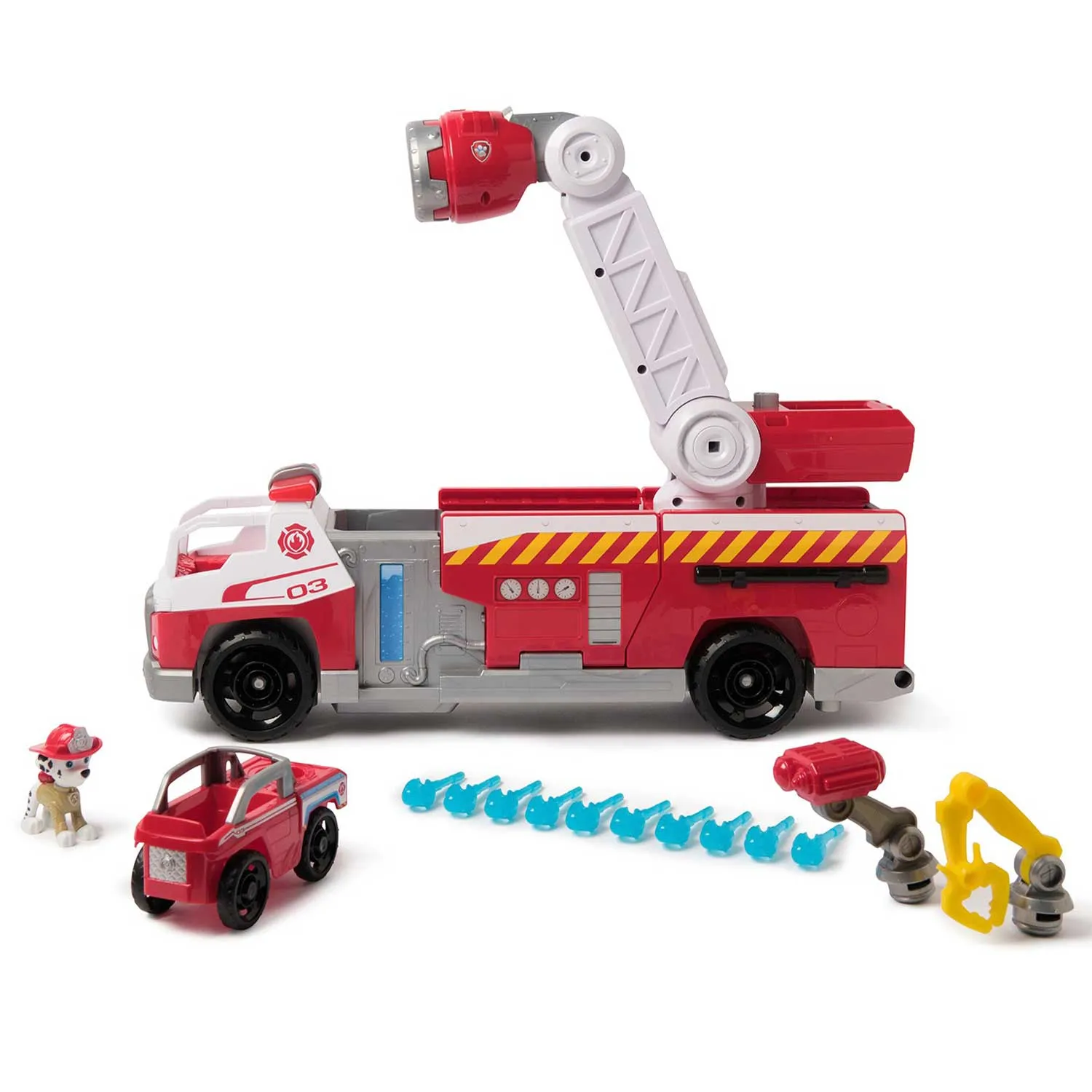 Игровой набор Paw Patrol Пожарная машина делюкс с аксессуарами, светом и звуком — это яркая и функциональная игрушка для маленьких героев, которые мечтают о спасательных миссиях вместе с любимыми щенками. Отличный подарок для детей от 3 лет, который сочетает в себе сюжетные приключения, развитие воображения и безопасное игровое время.