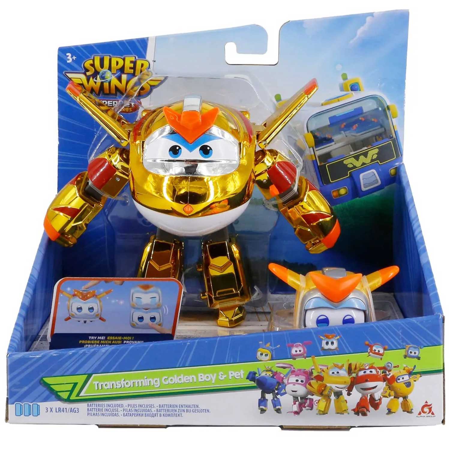 Погрузитесь в мир приключений с набором Супер Крылья: Голден Бой с питомцем! Этот трансформер из популярного мультсериала Super Wings оживит любимого героя прямо у вас дома.