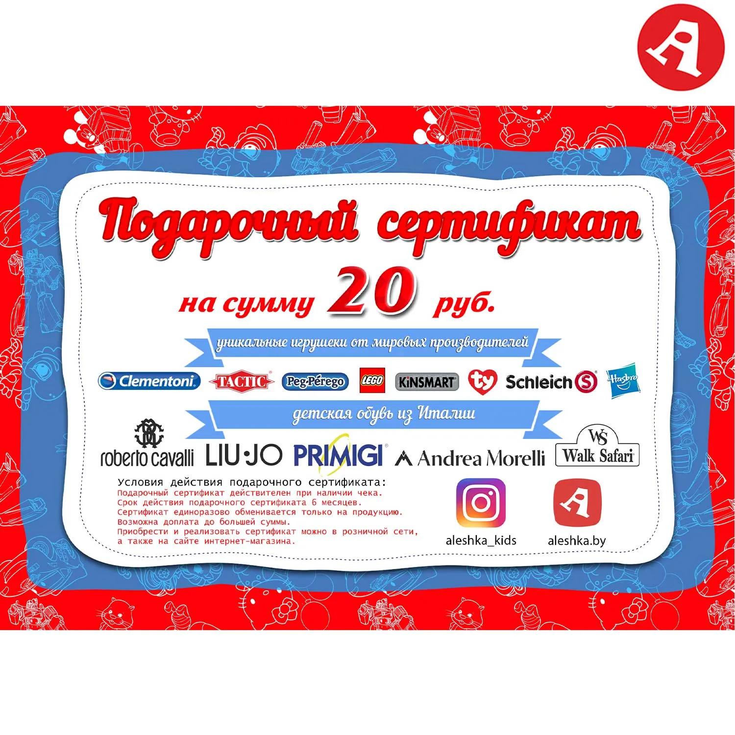 - подарочный сертификат принимается во всех магазинах сети "Алешка", а также в интернет-магазине