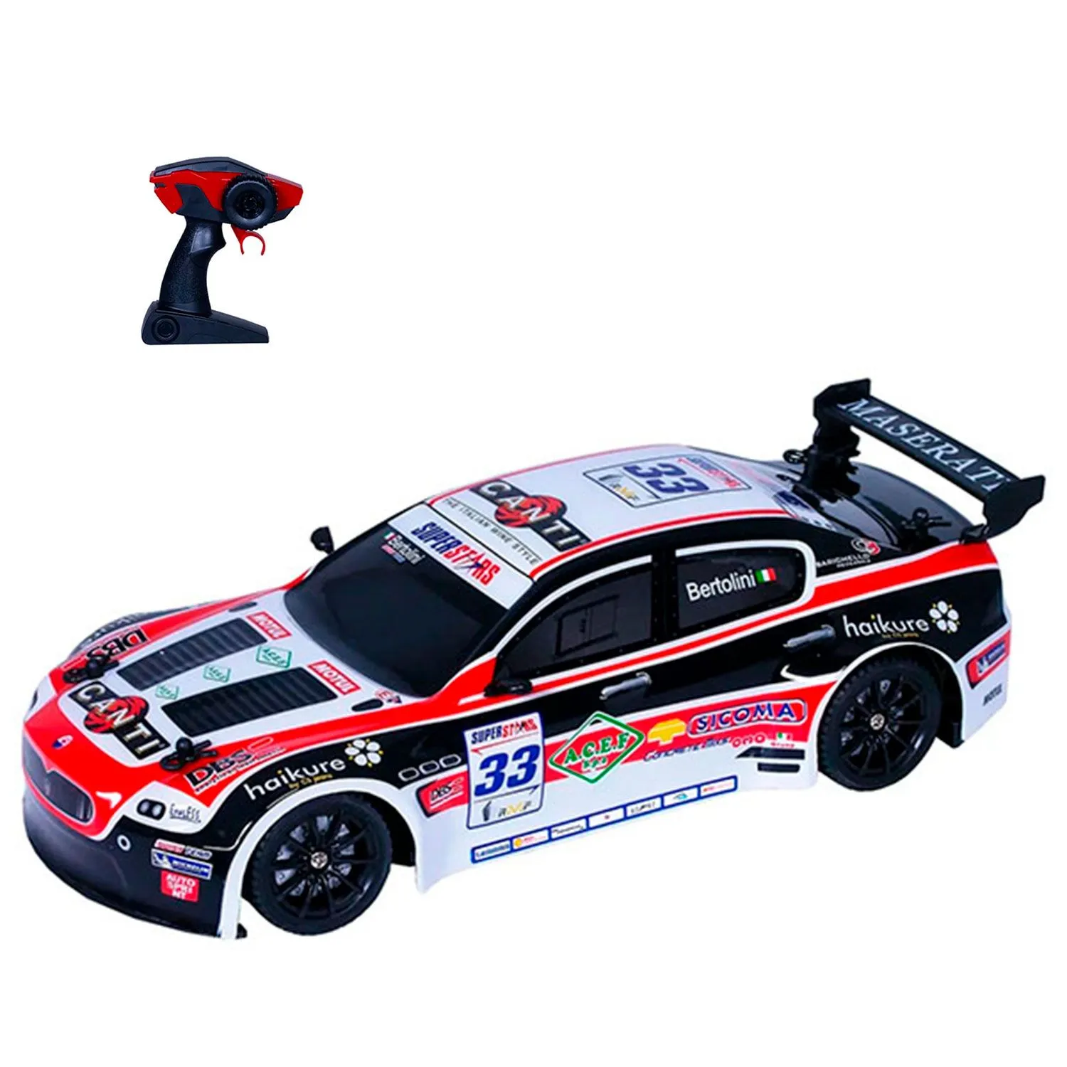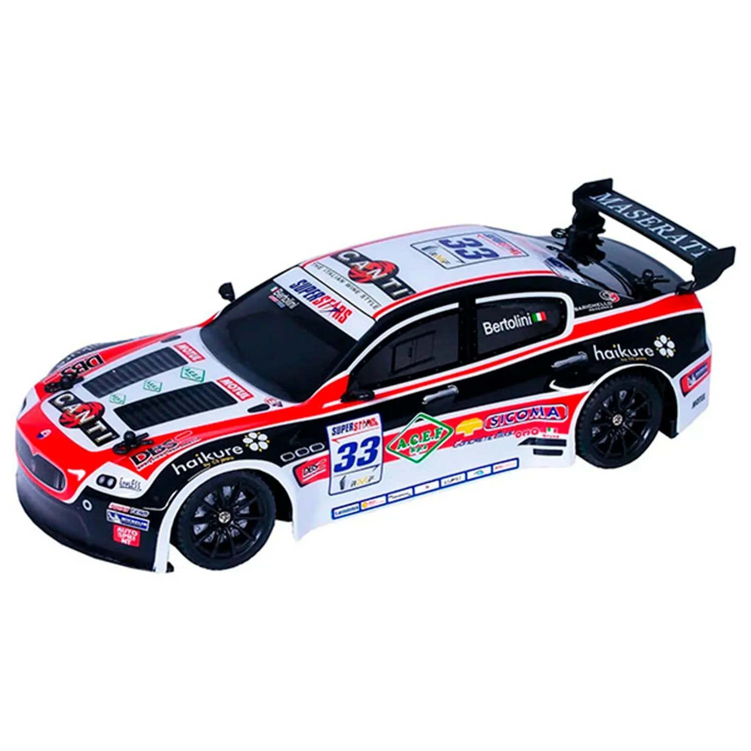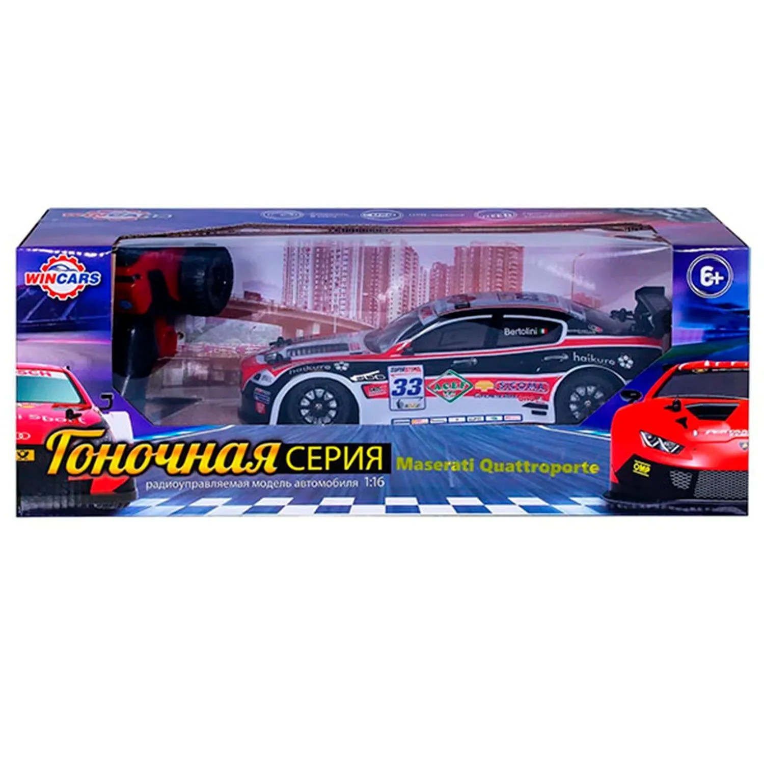 - имеет ударопрочный кузов, спортивный дизайн с логотипами и номерными знаками