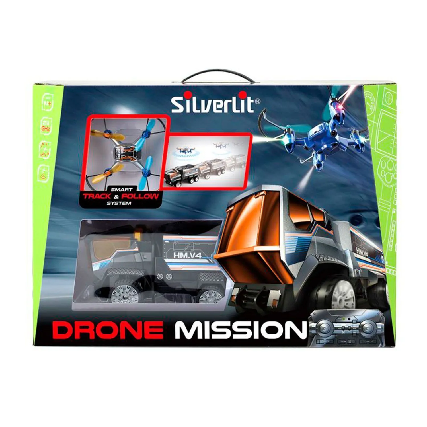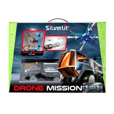 Радиоуправляемый набор «Миссия Дронов» от компании «Silverlit» представлен реалистично исполненным грузовиком и квадрокоптером.