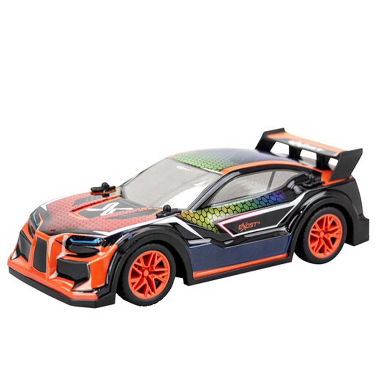 - реалистичный дизайн: высокопроизводительная радиоуправляемая машинка с элегантным современным дизайном, выполненная в эффектной оранжево-черной цветовой гамме и дополненная яркими светодиодными эффектами